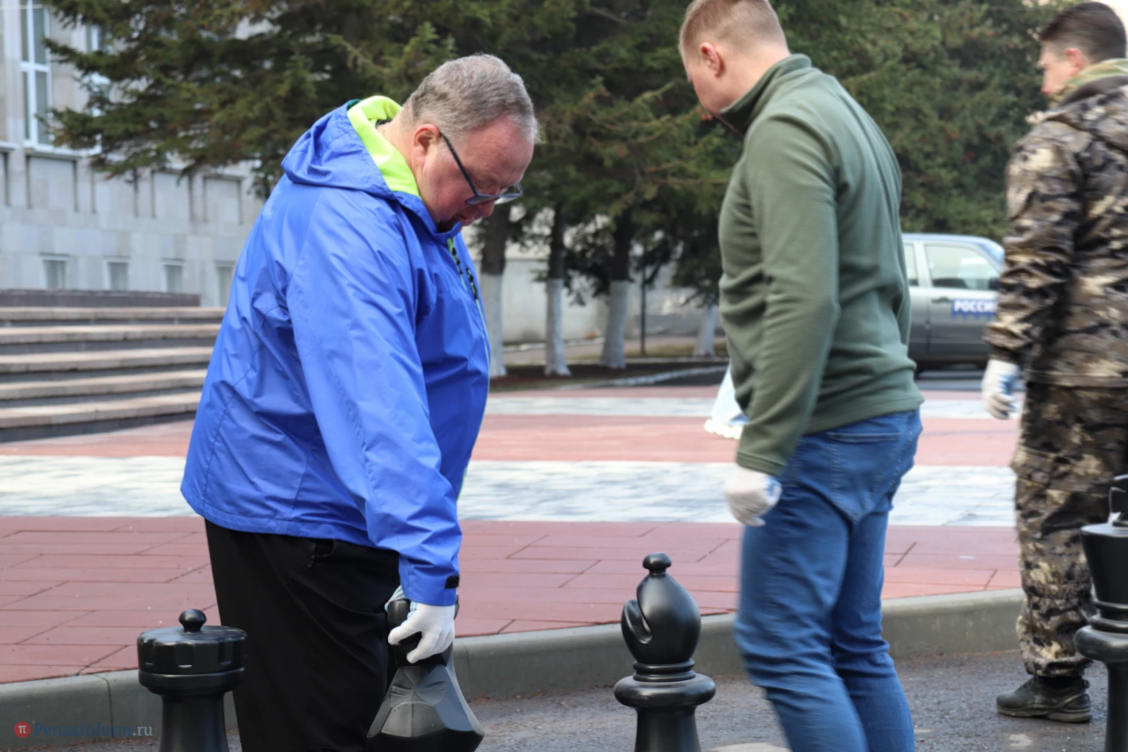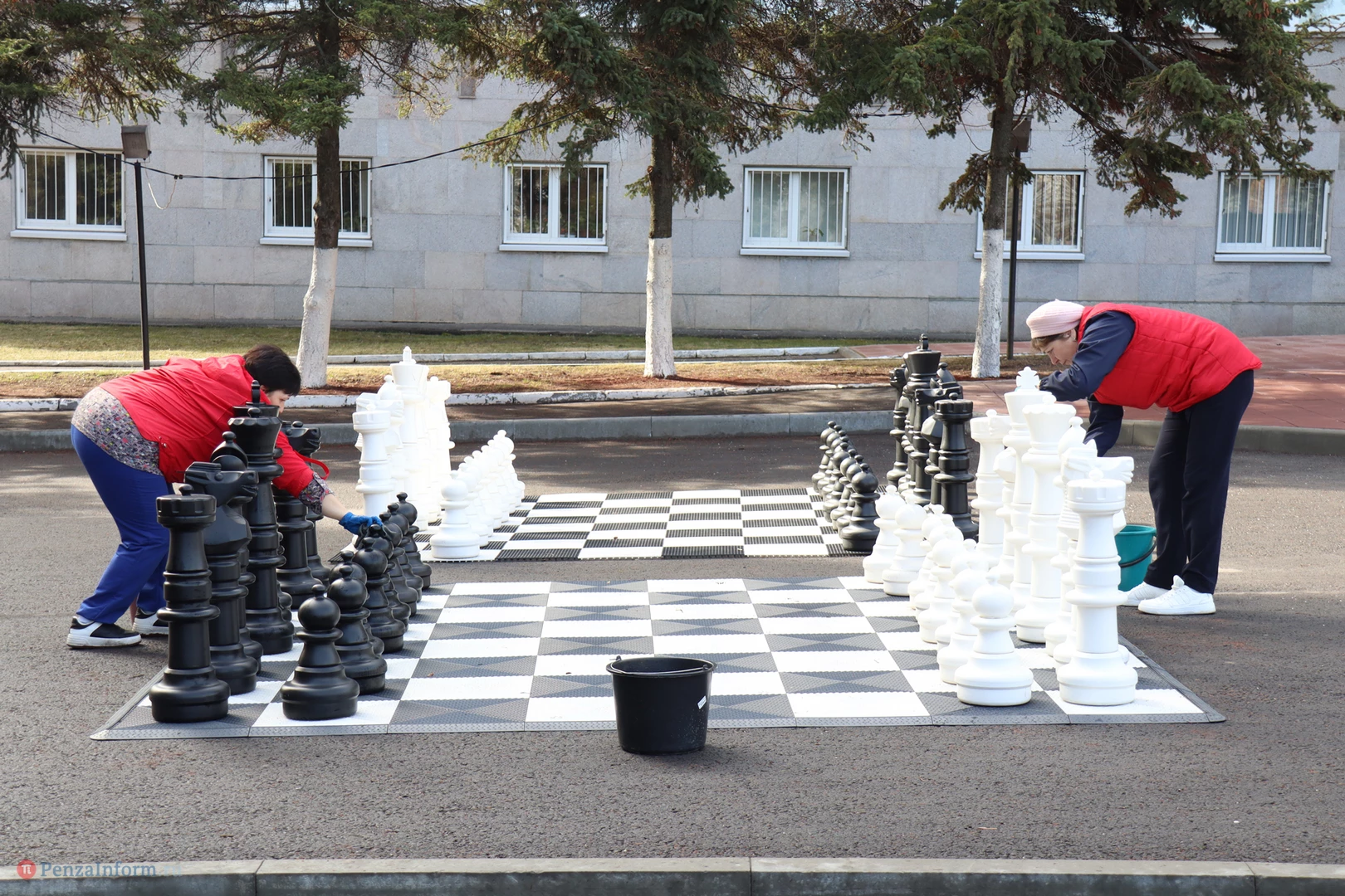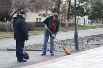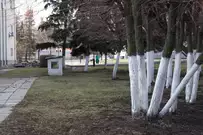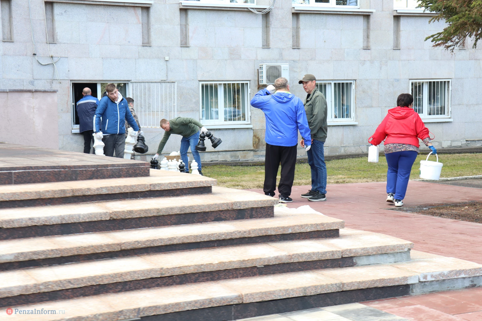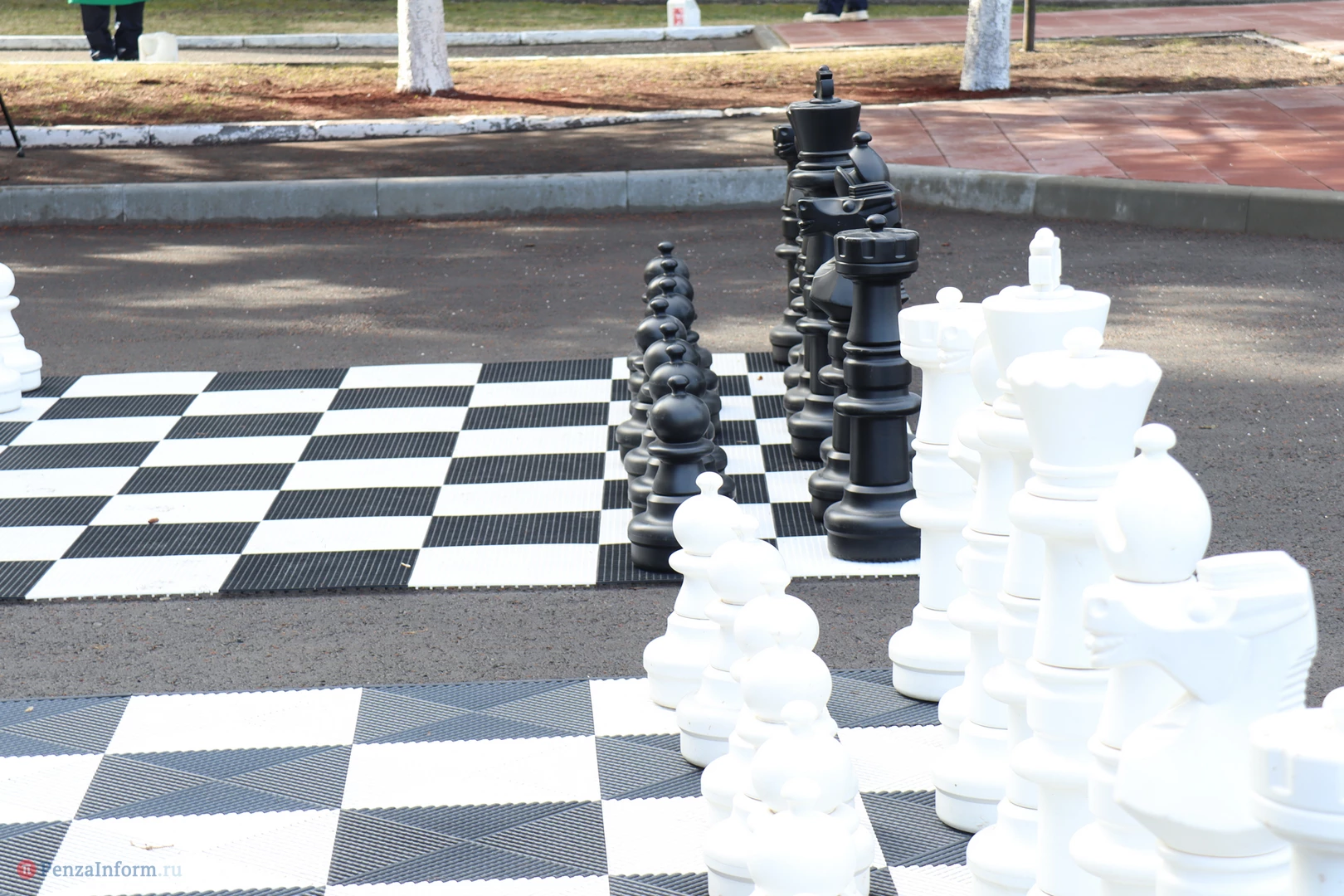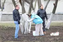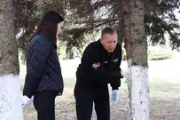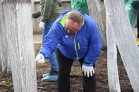 Чиновники трудились рядом с местом работы - на площади Маршала Жукова. Они расчистили территорию, побелили стволы деревьев, вернули на шахматные доски фигуры.