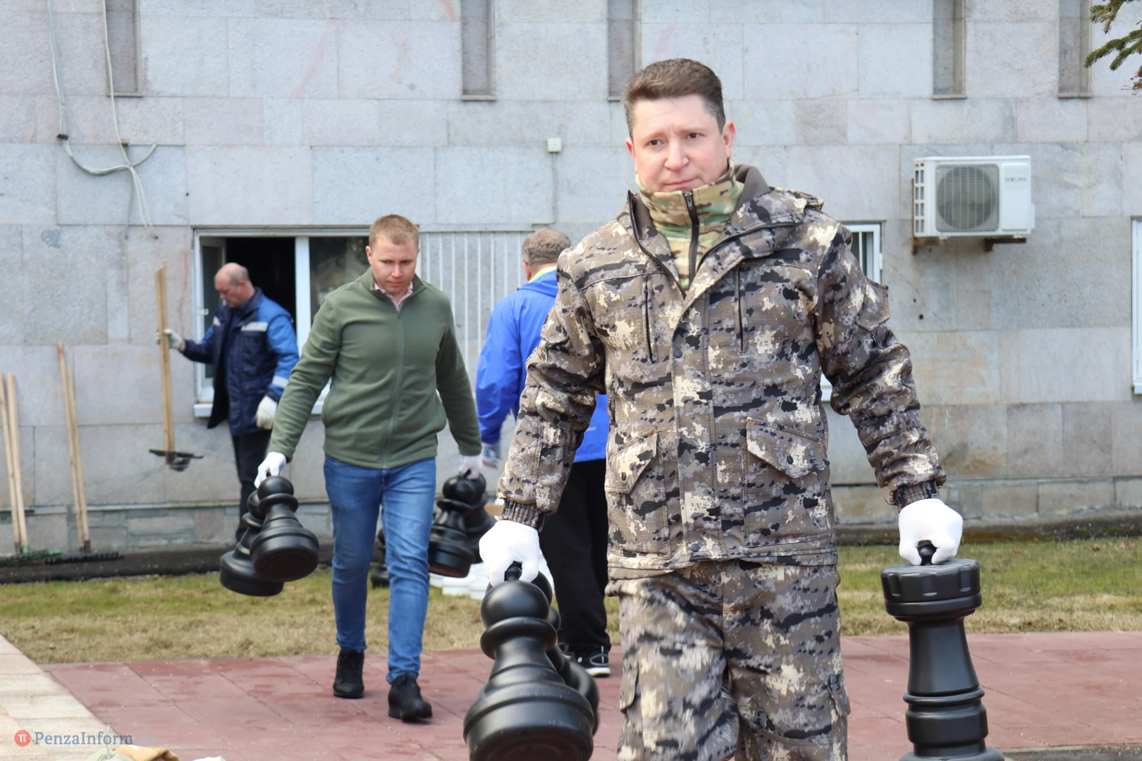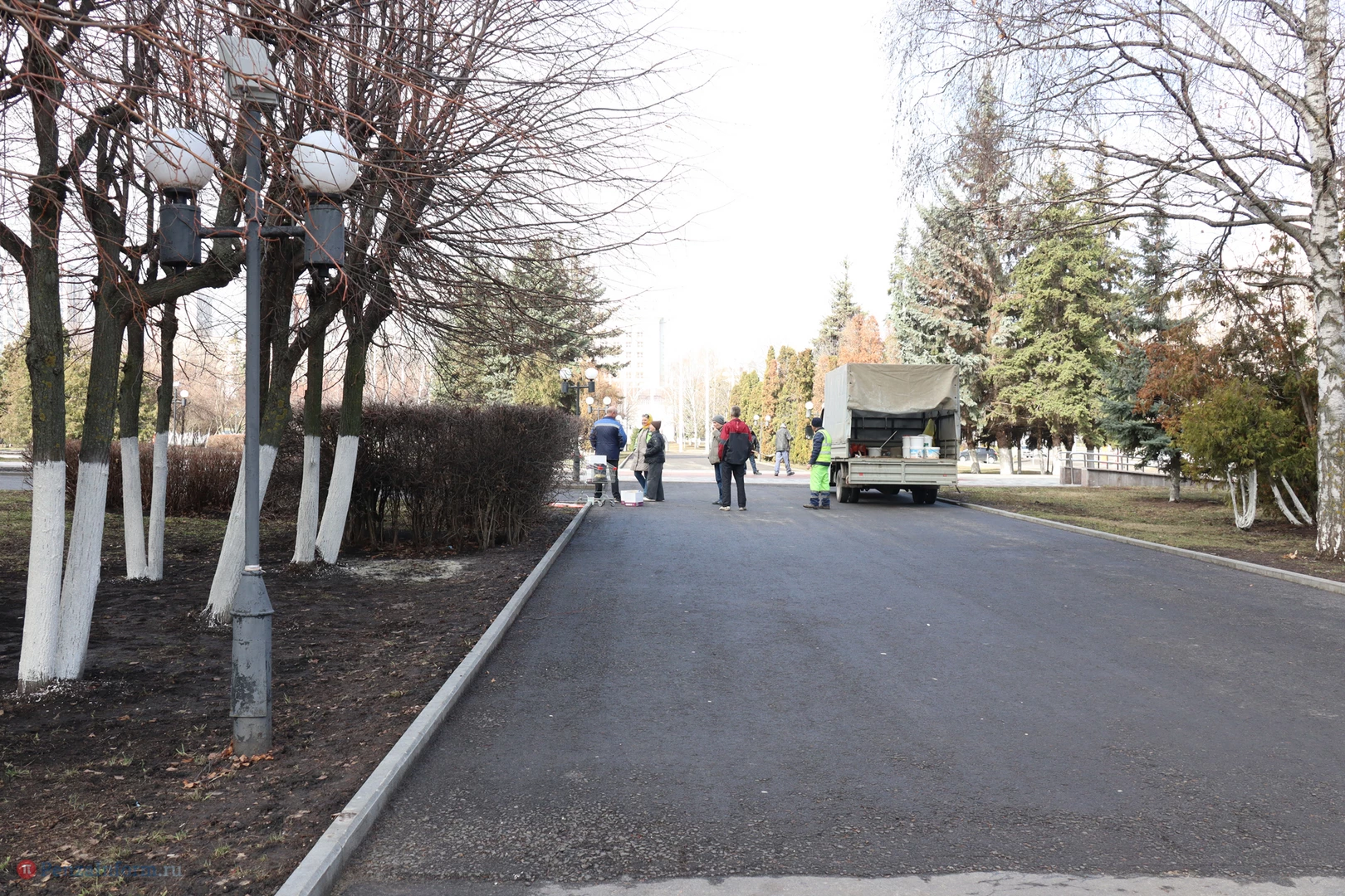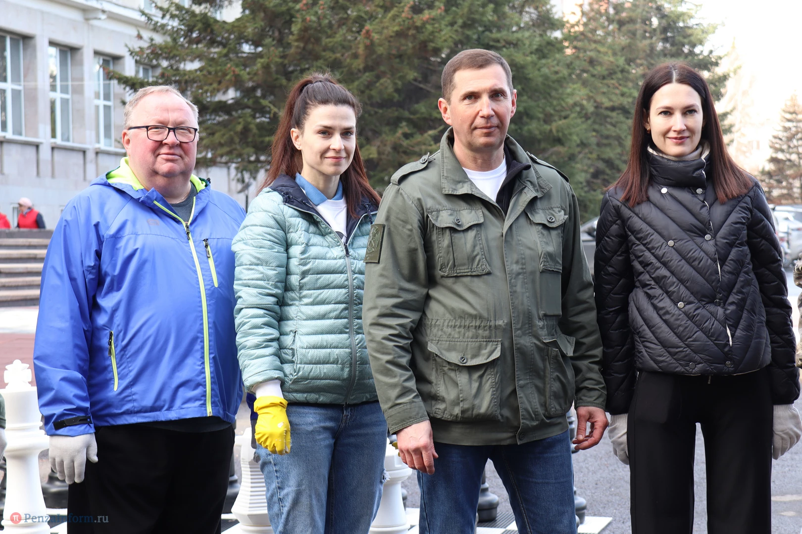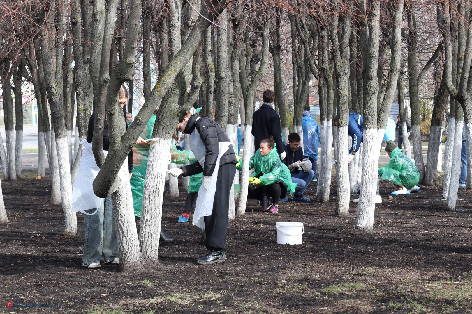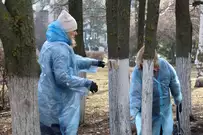 Чиновники трудились рядом с местом работы - на площади Маршала Жукова. Они расчистили территорию, побелили стволы деревьев, вернули на шахматные доски фигуры.