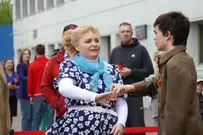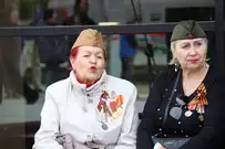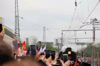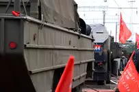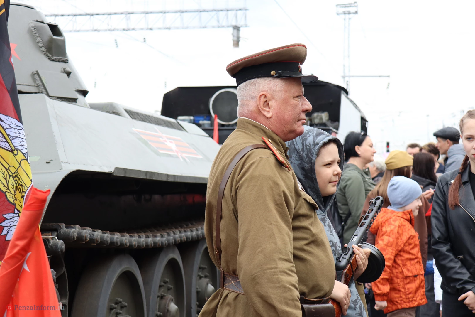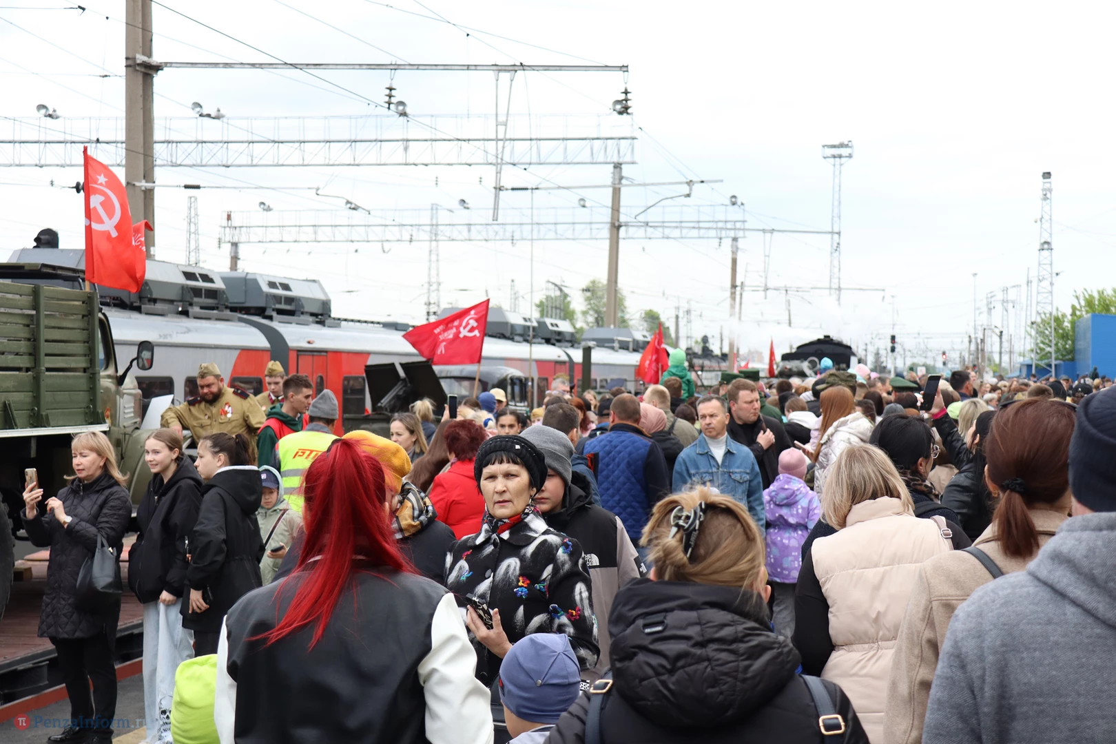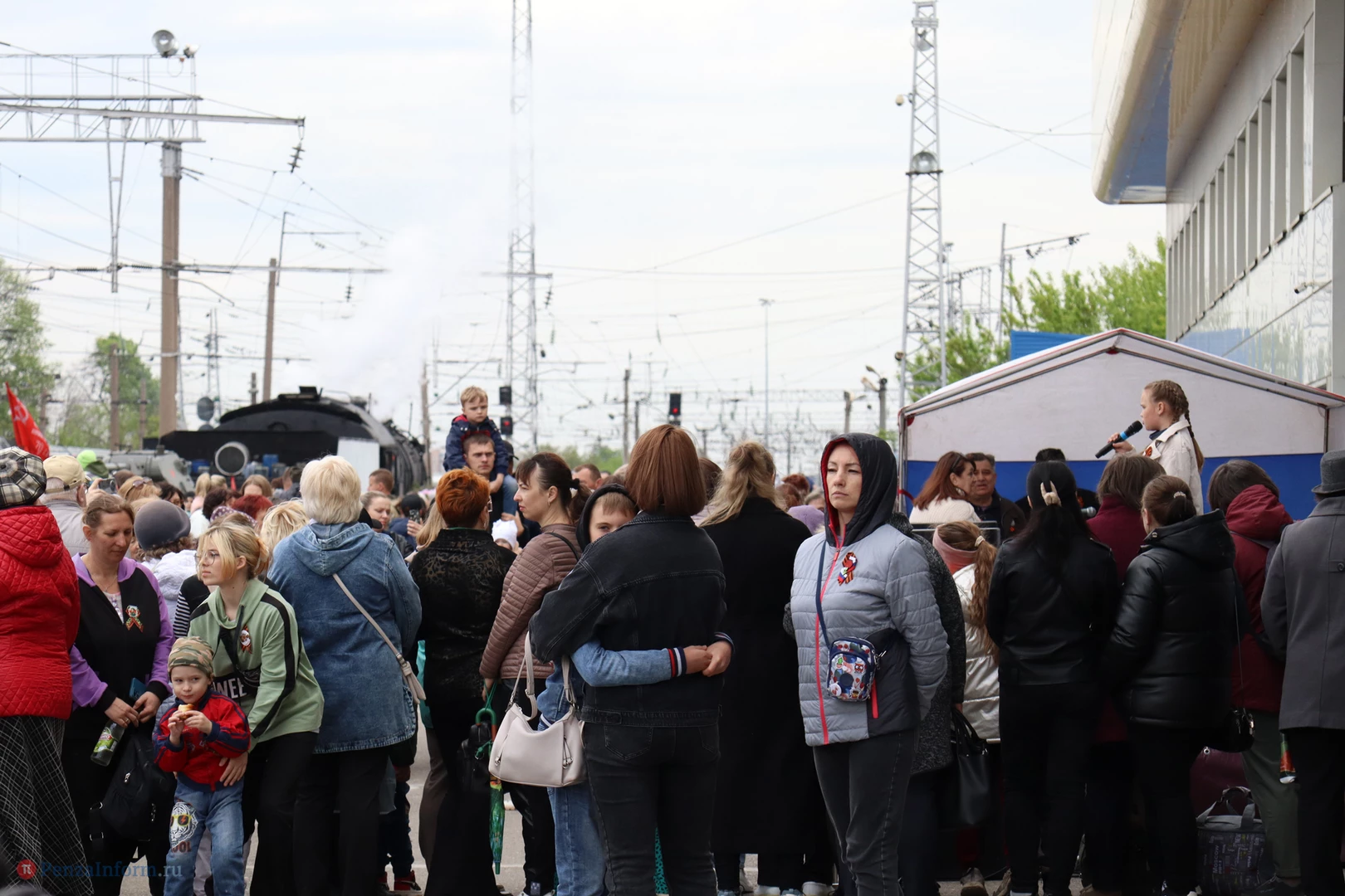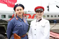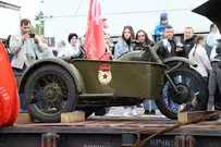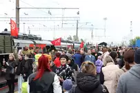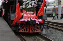 Прибытие поезда стало частью празднования Дня Победы.