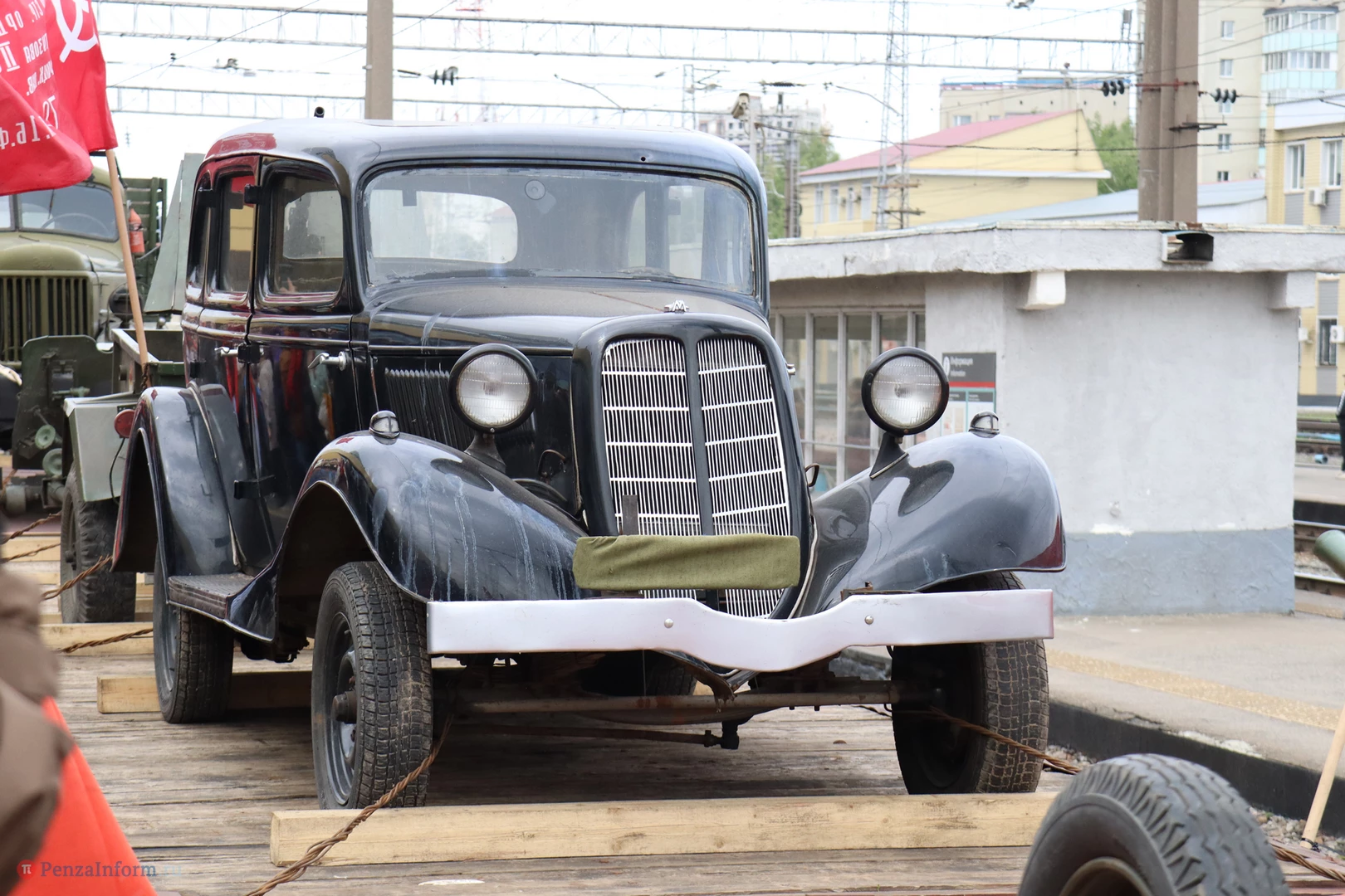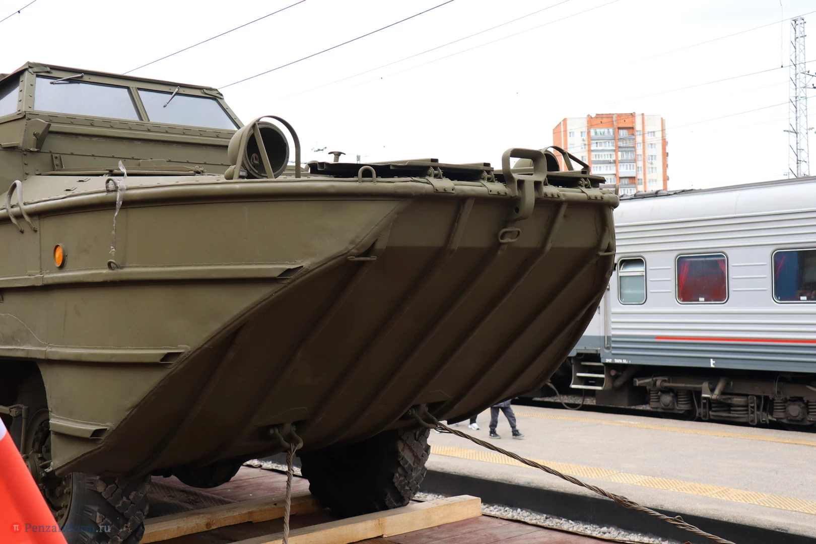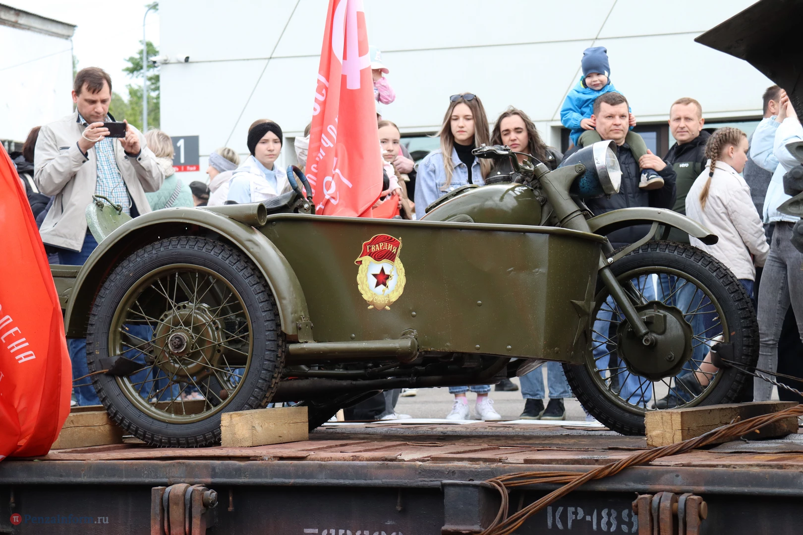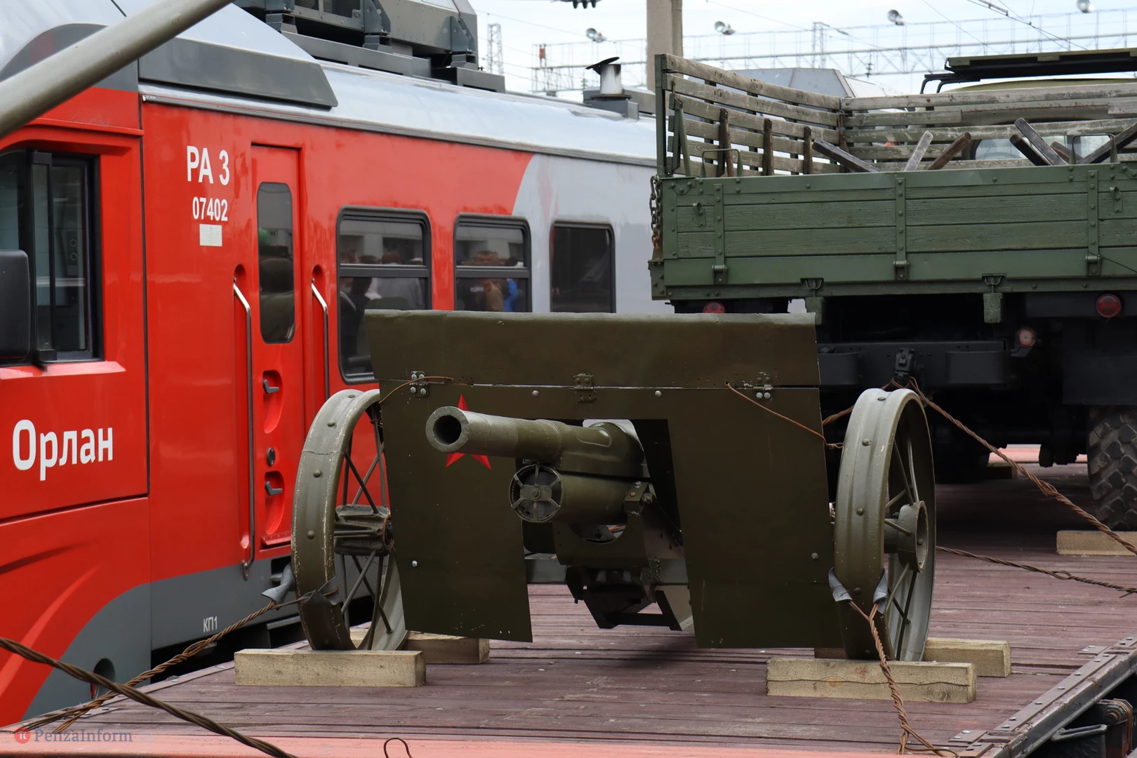 Ретропоезд встретило множество пензенцев. Их вниманию представили 9 платформ с эксклюзивными экспонатами: автомобилем-амфибией, тяжелой бронетехникой, образцами уникального стрелкового оружия. «Паровоз Победы» сопровождали профессиональные реконструкторы.