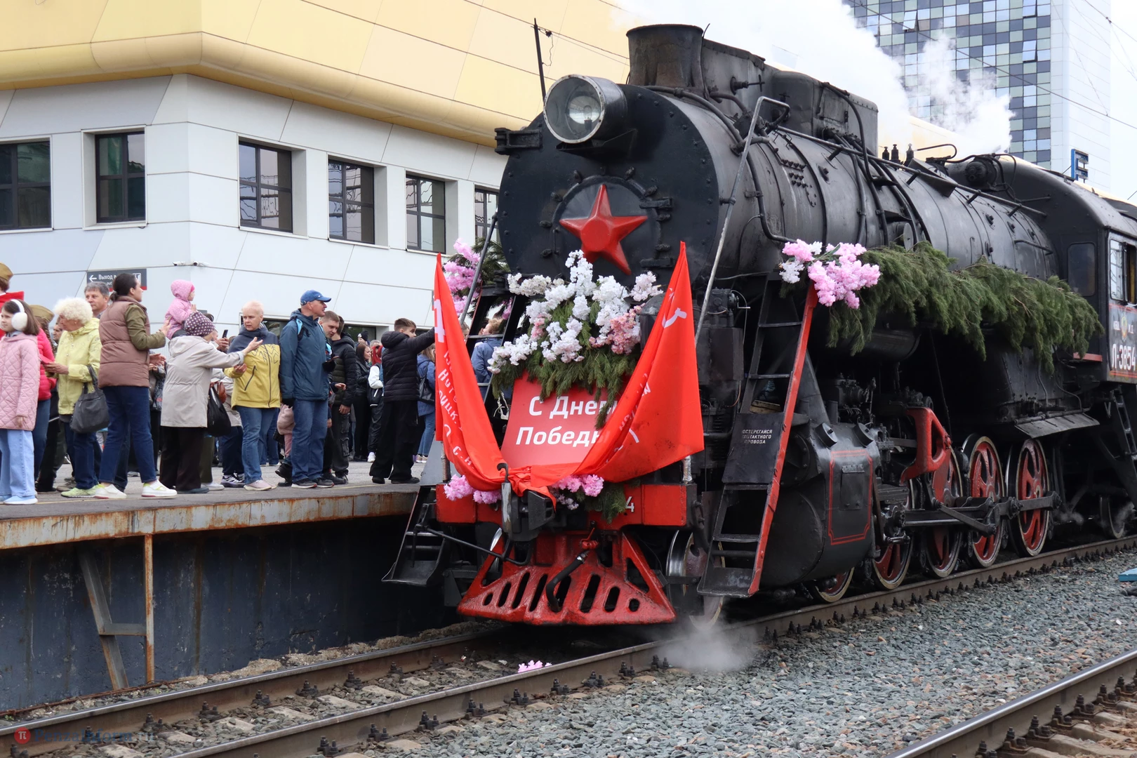 В воскресенье, 4 мая, в Пензу прибыл ретропоезд «Паровоз Победы». Состав привел легендарный паровоз «Лебедянка», оформленный в стилистике мая 1945-го.