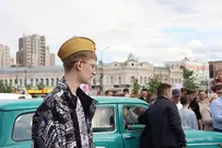 На площади также организовали выставку ретроавтомобилей и нескольких образцов военной техники, принявшей участие в параде на проспекте Победы.