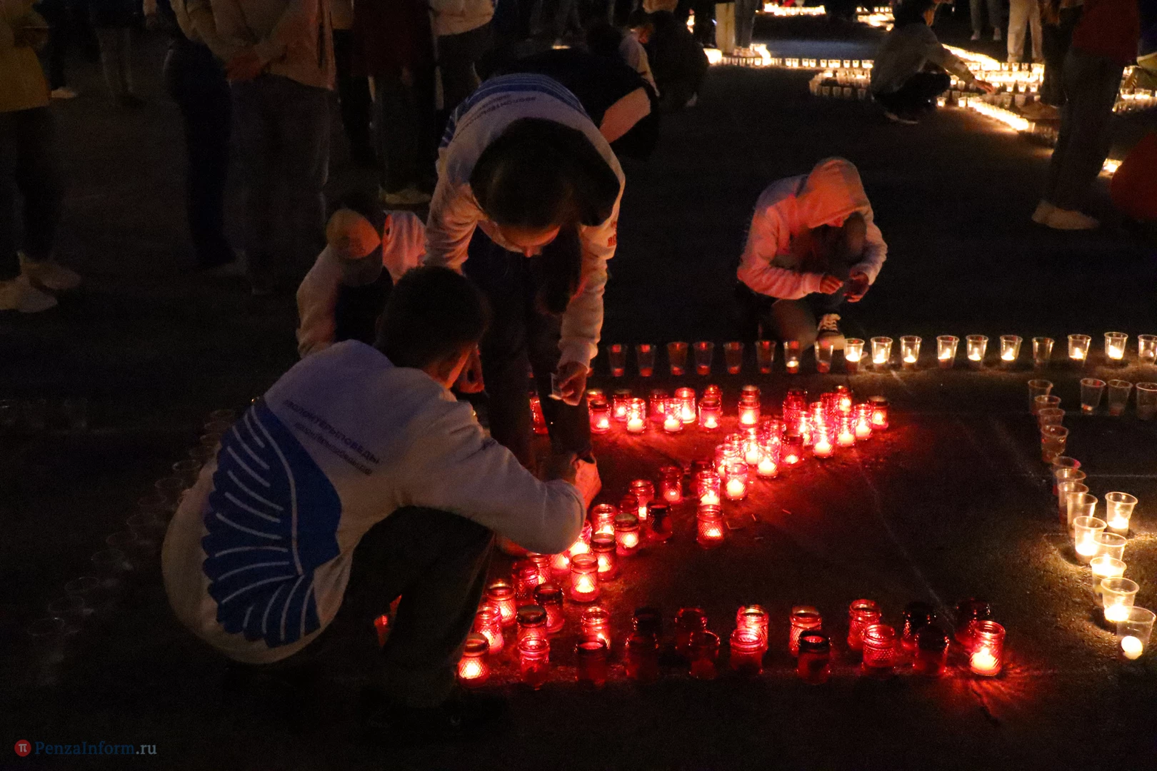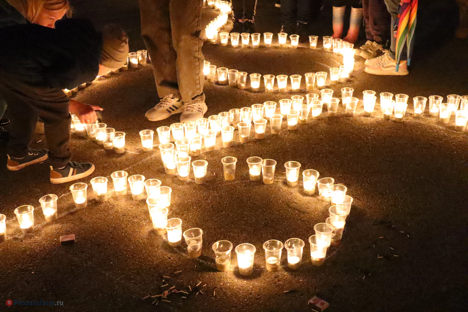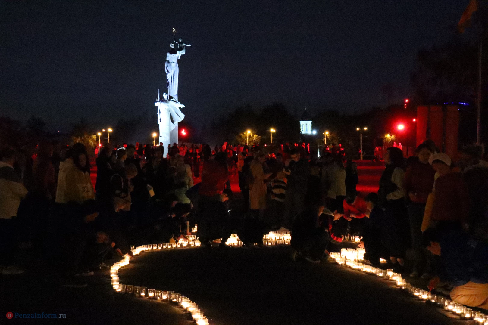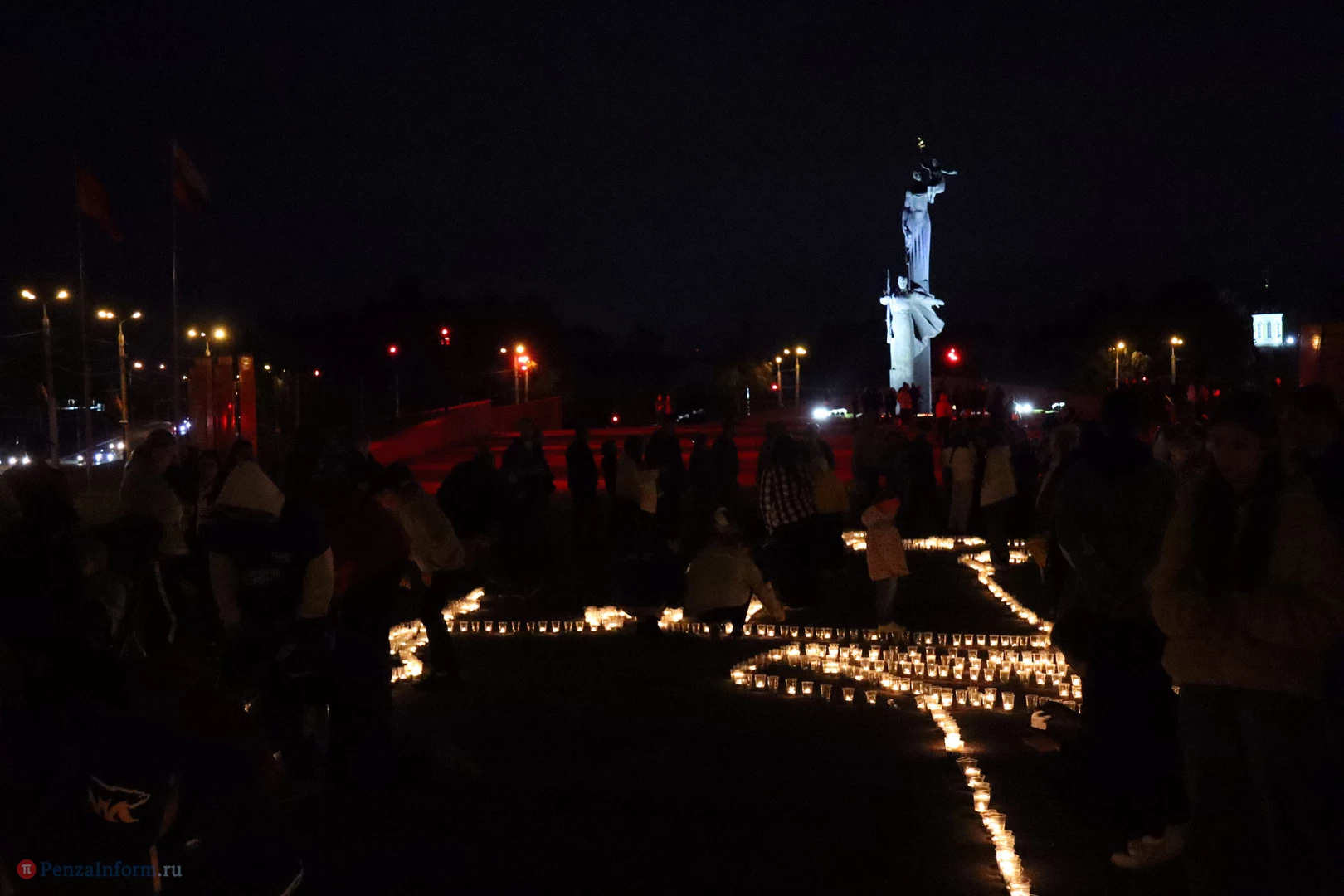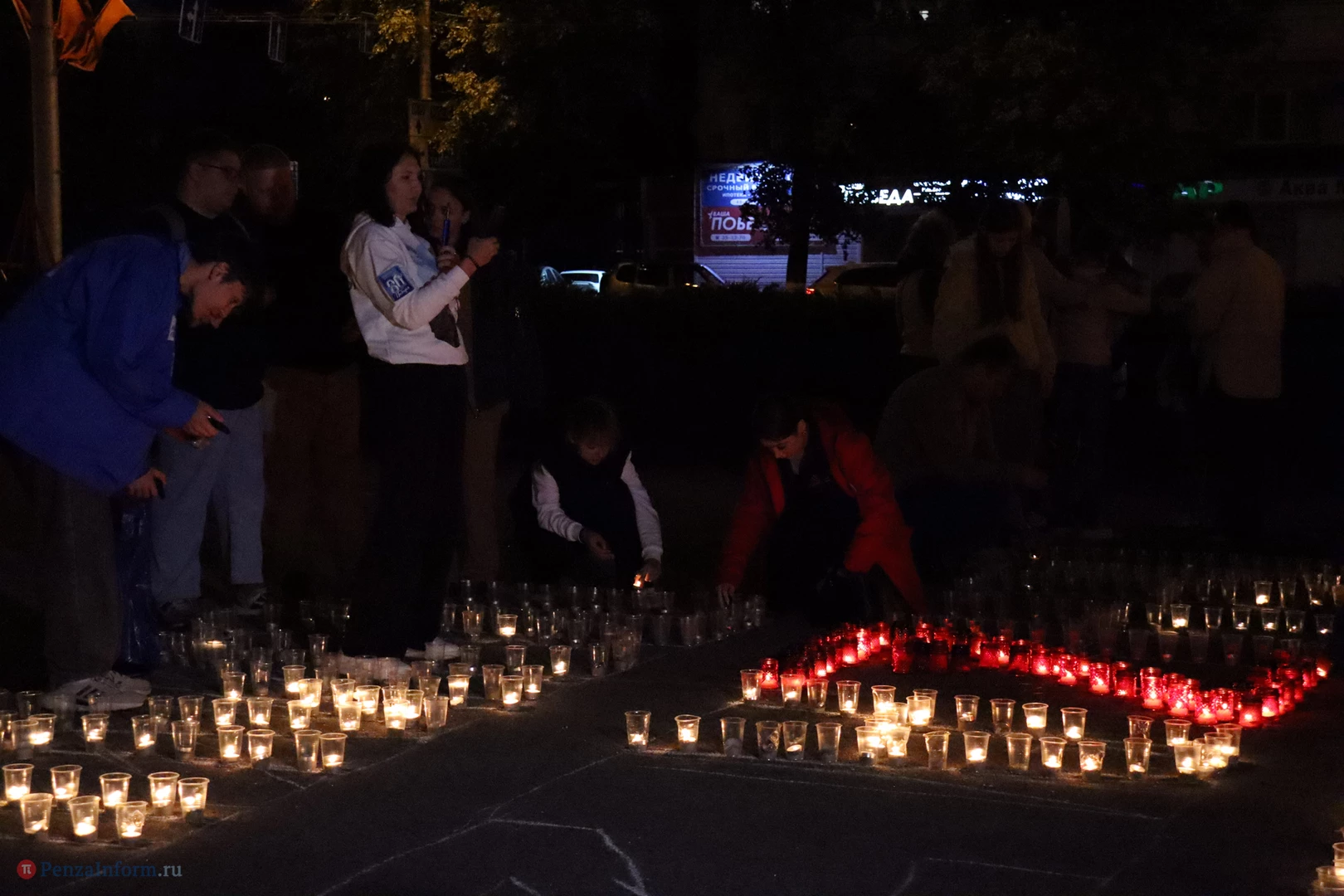 На асфальте из горящих свечей участники выложили изображение памятника Победы и надпись «Пенza помнит».