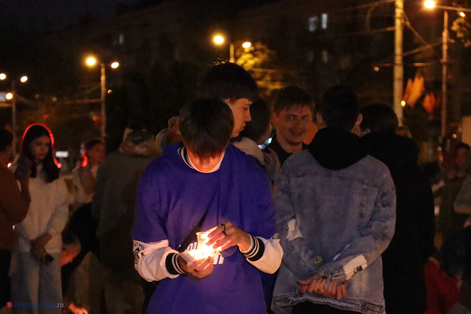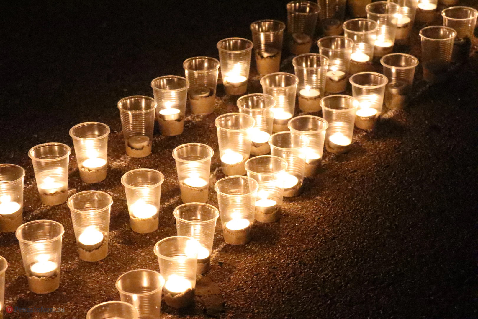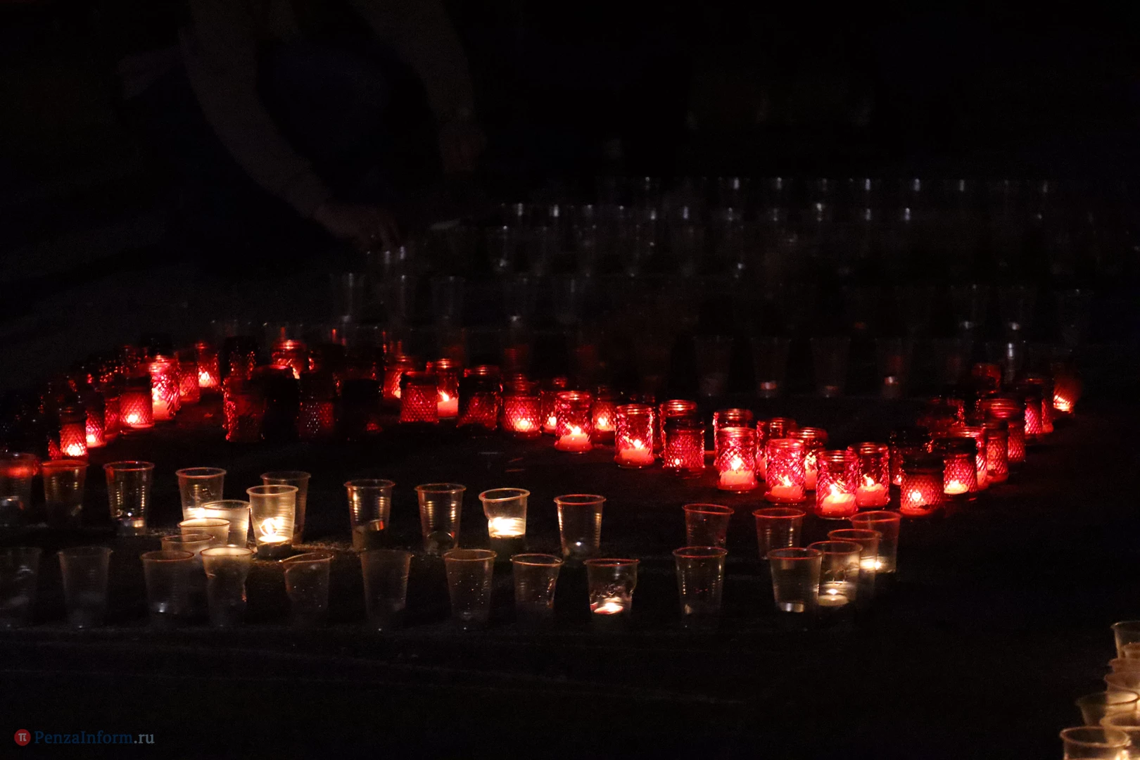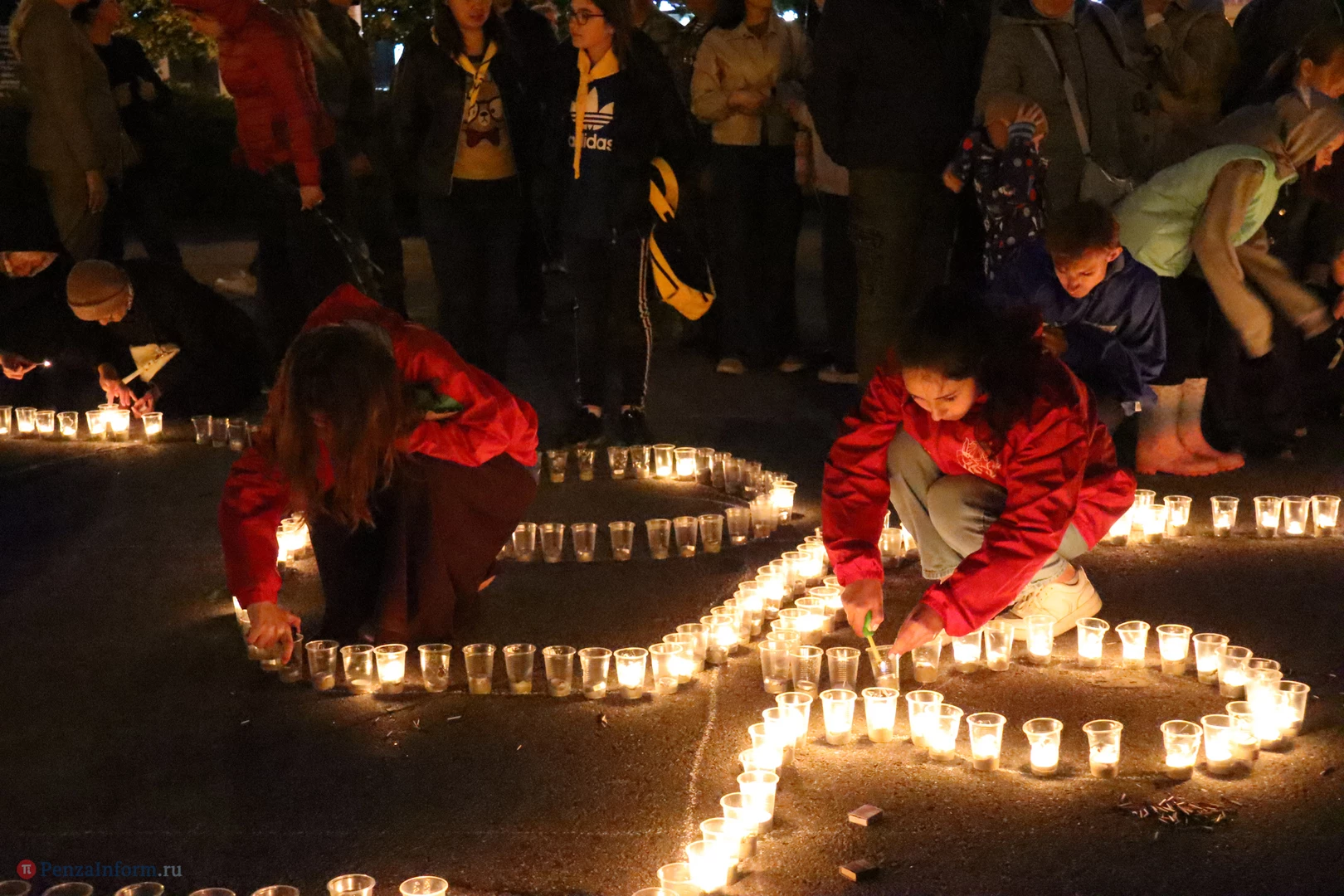 На асфальте из горящих свечей участники выложили изображение памятника Победы и надпись «Пенza помнит».