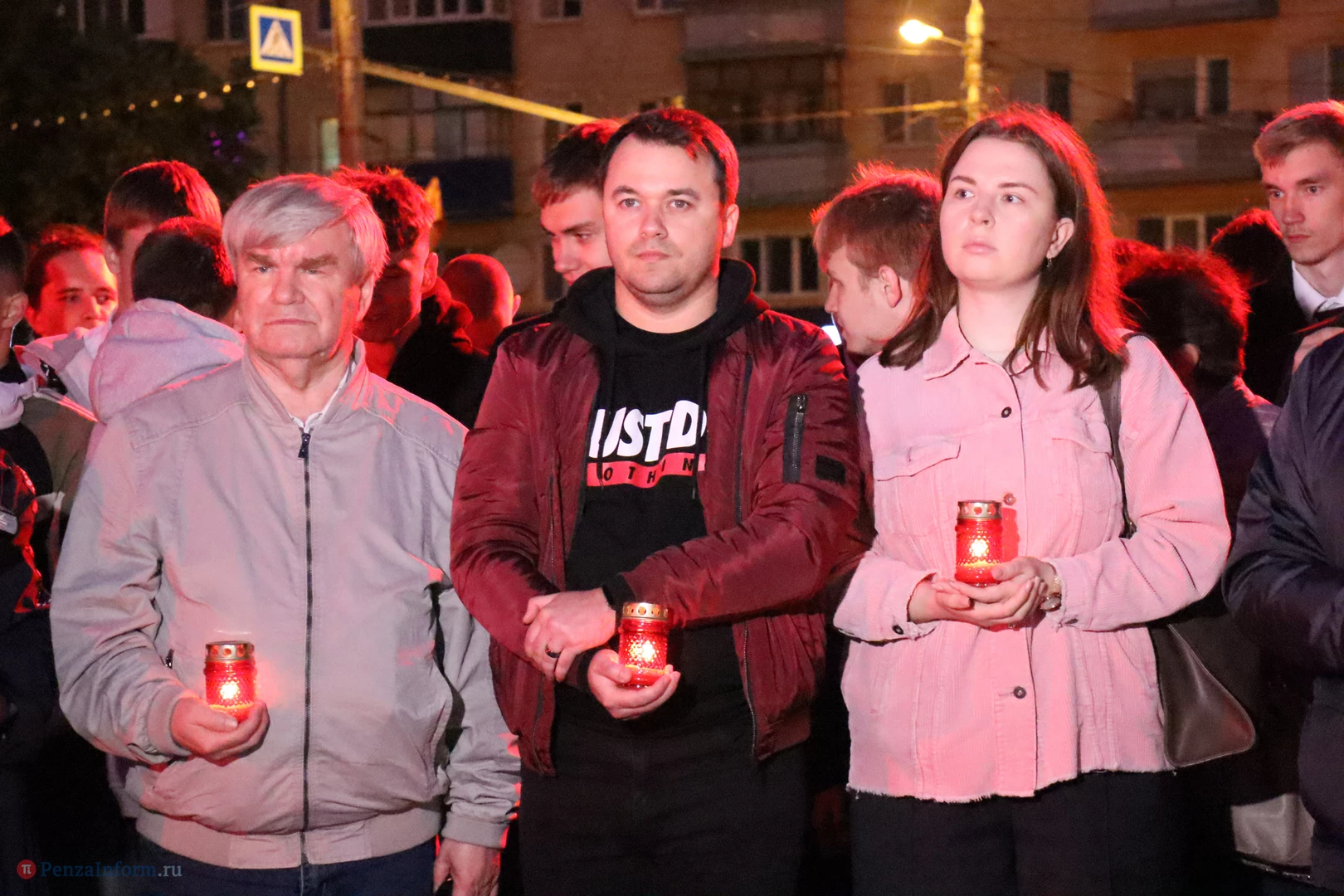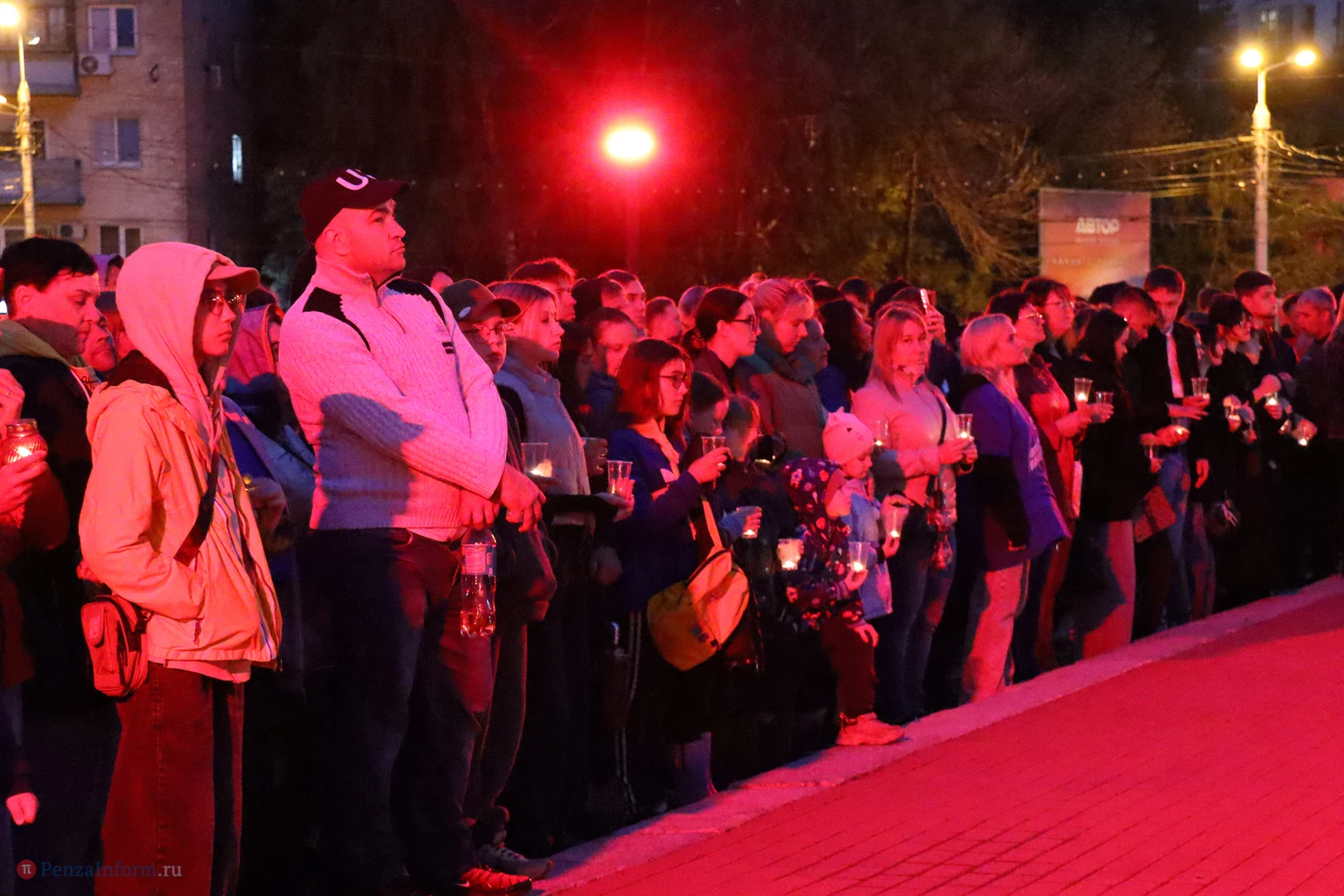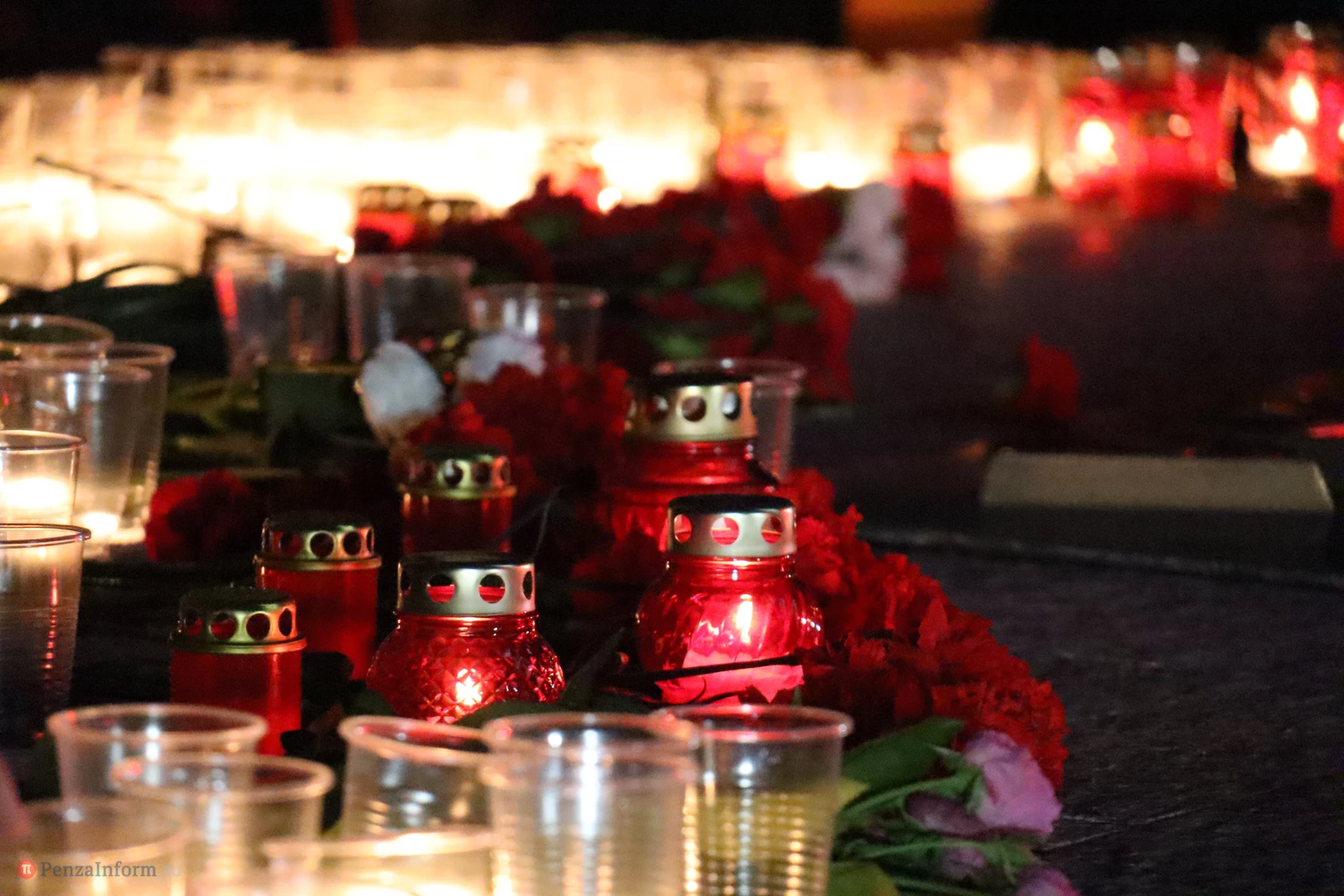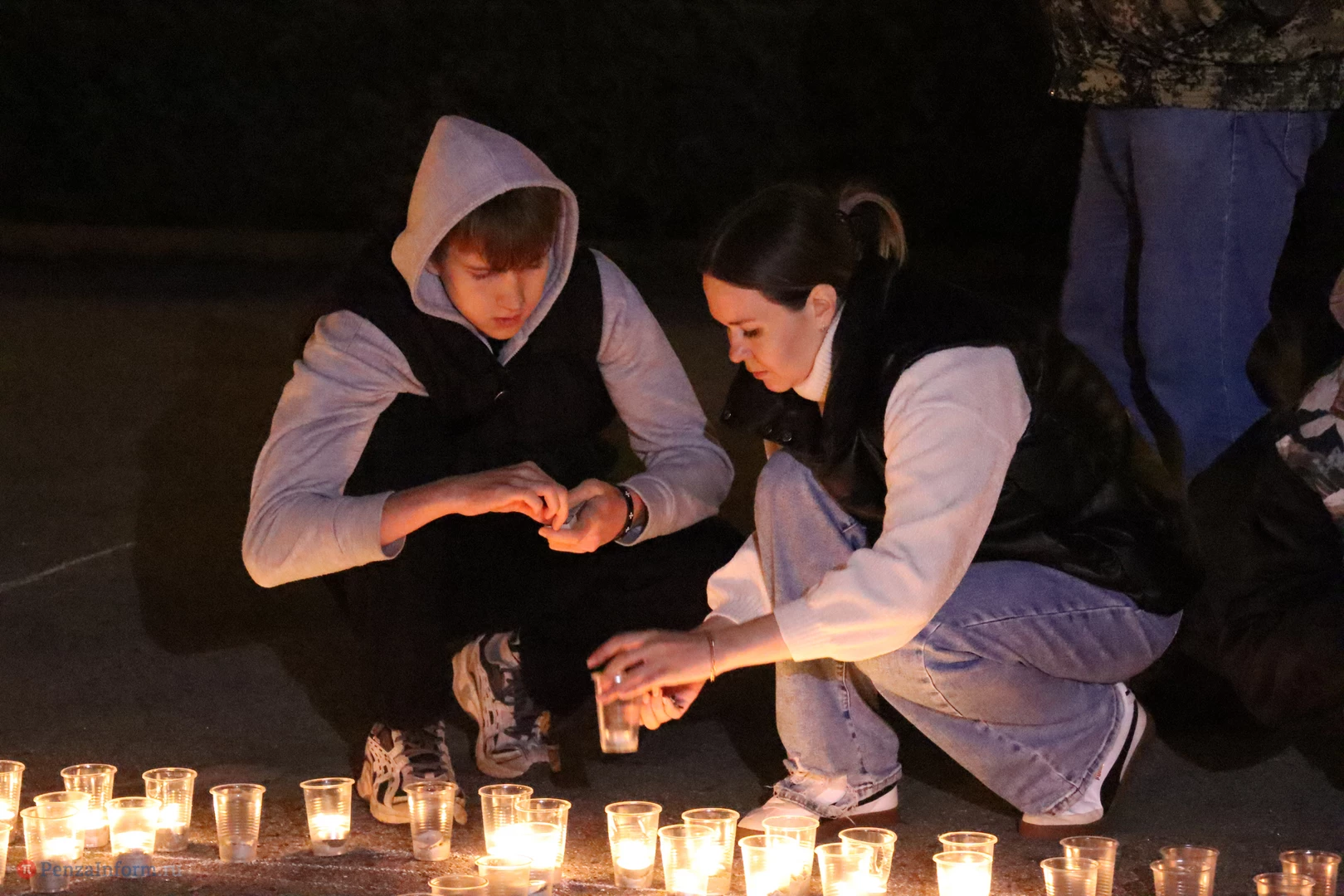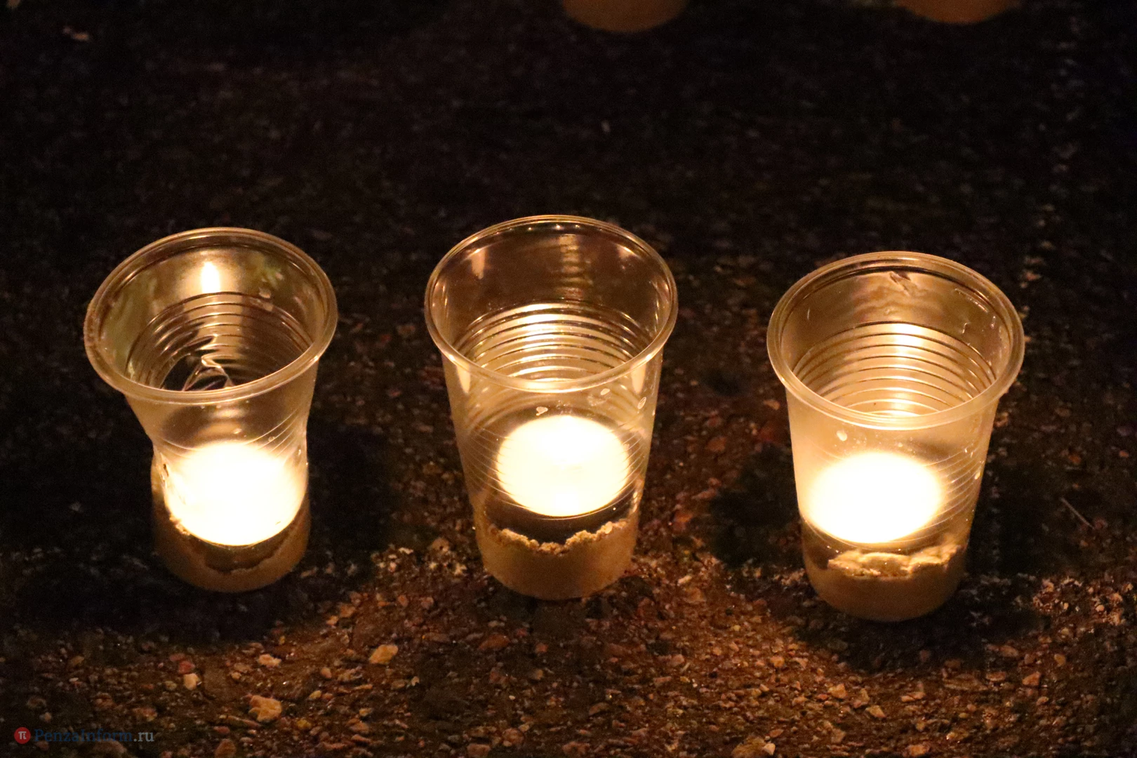 На асфальте из горящих свечей участники выложили изображение памятника Победы и надпись «Пенza помнит».