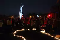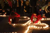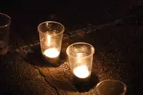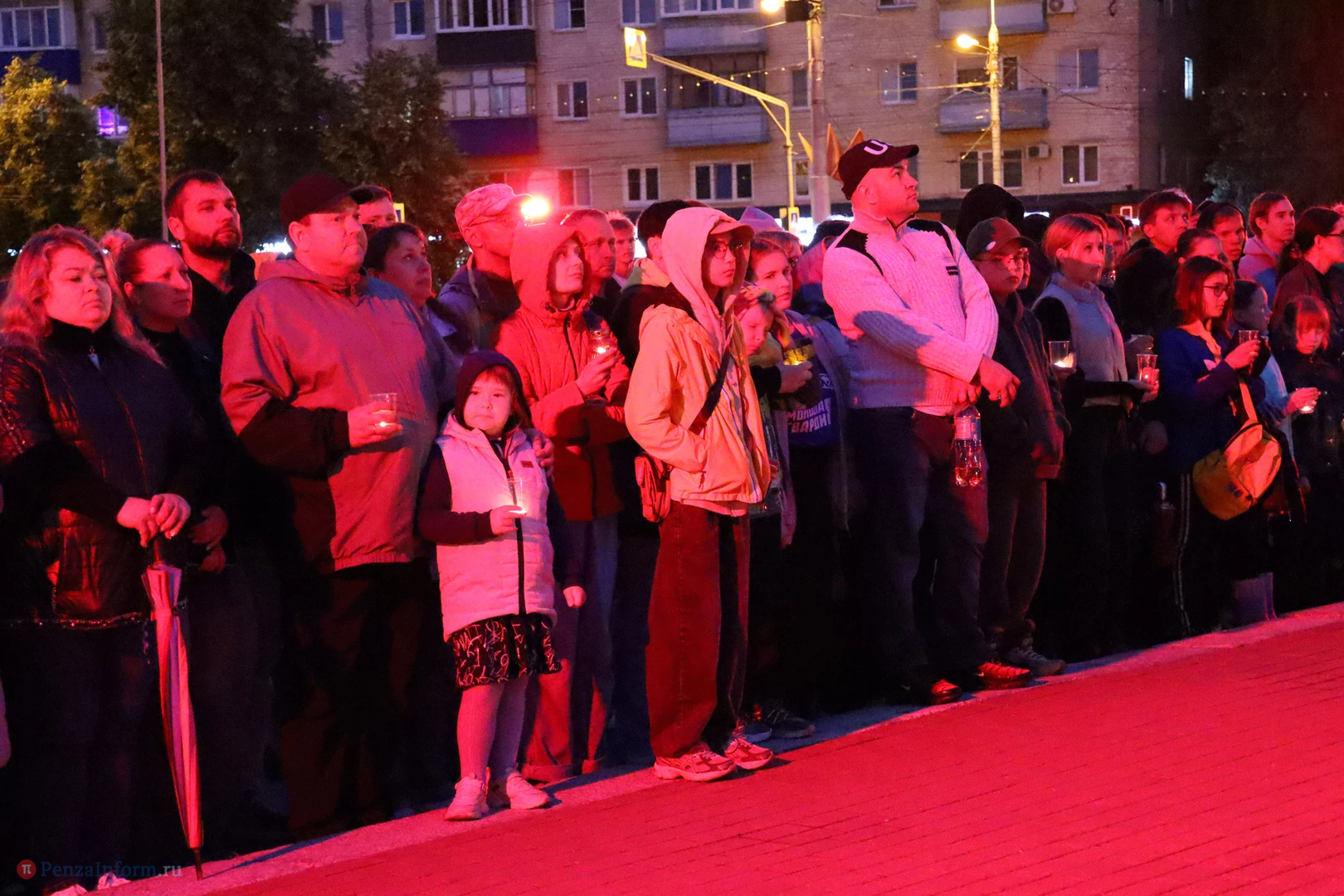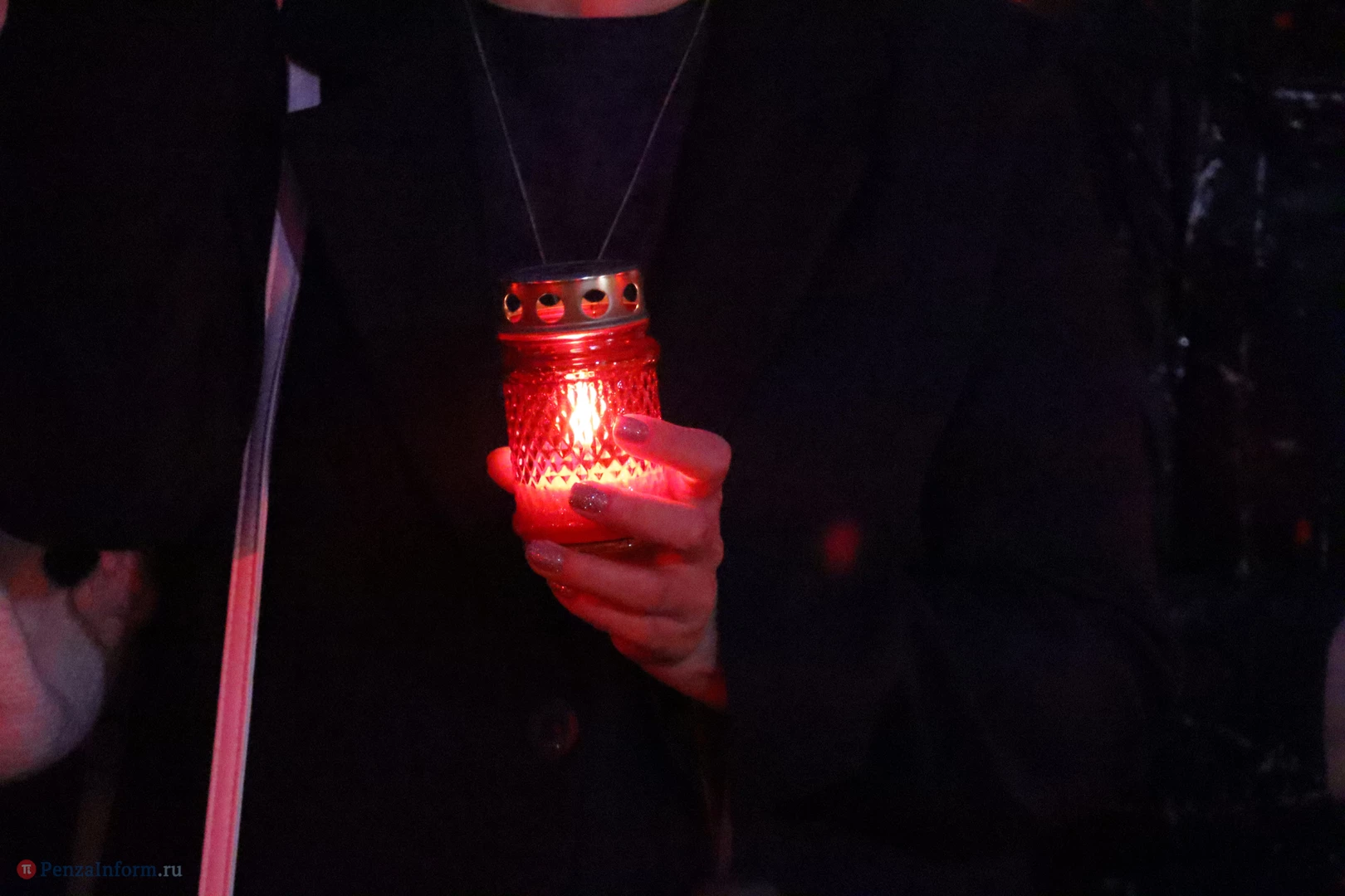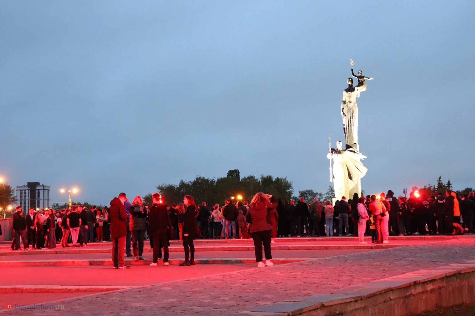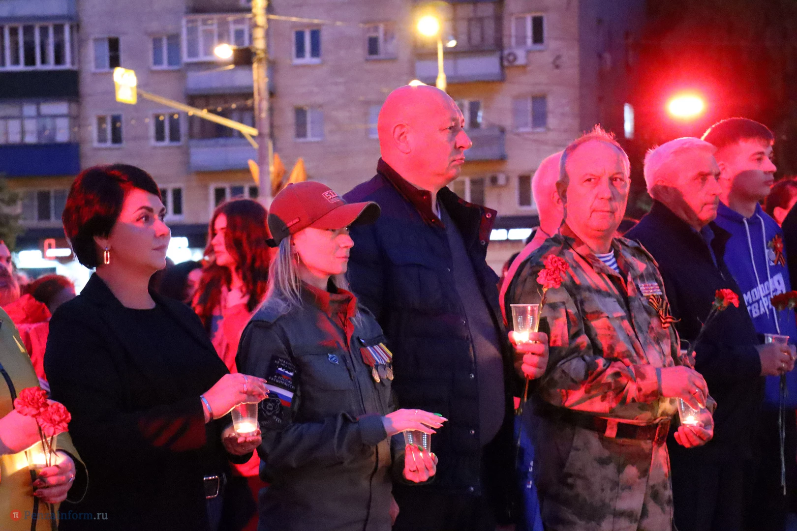 На асфальте из горящих свечей участники выложили изображение памятника Победы и надпись «Пенza помнит».