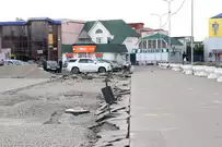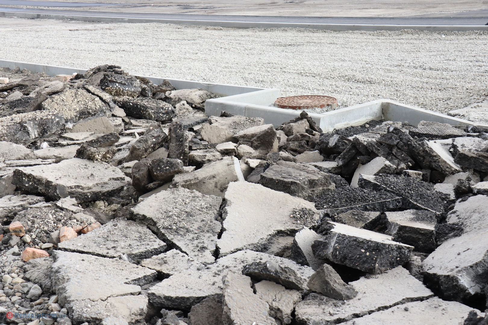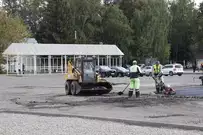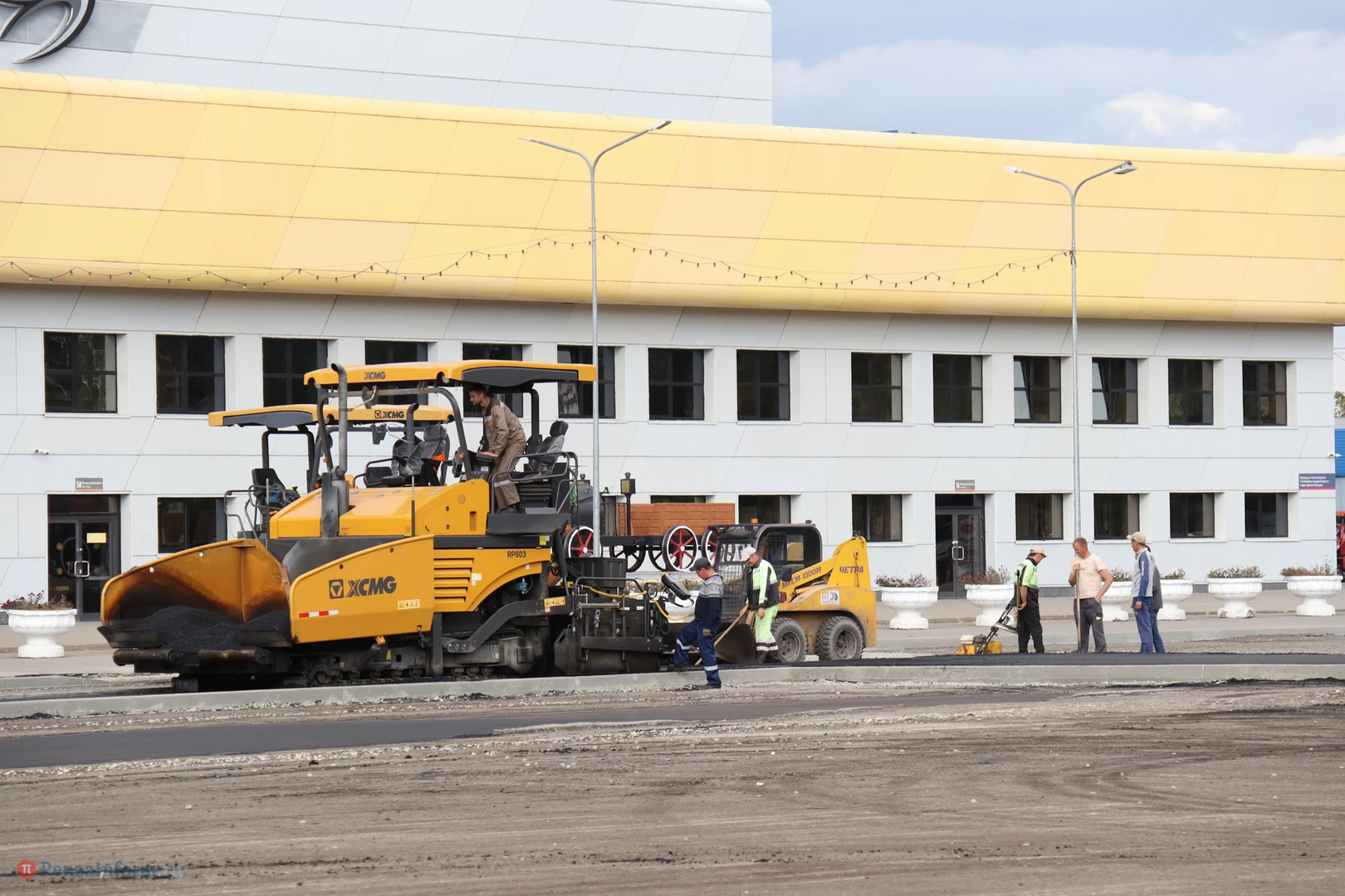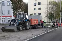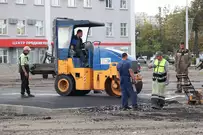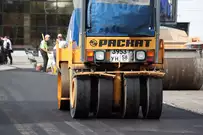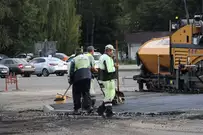 Рабочие уже завершили фрезерование изношенного дорожного покрытия, сделали островки безопасности и пешеходные зоны и теперь приступили к укладке асфальта.