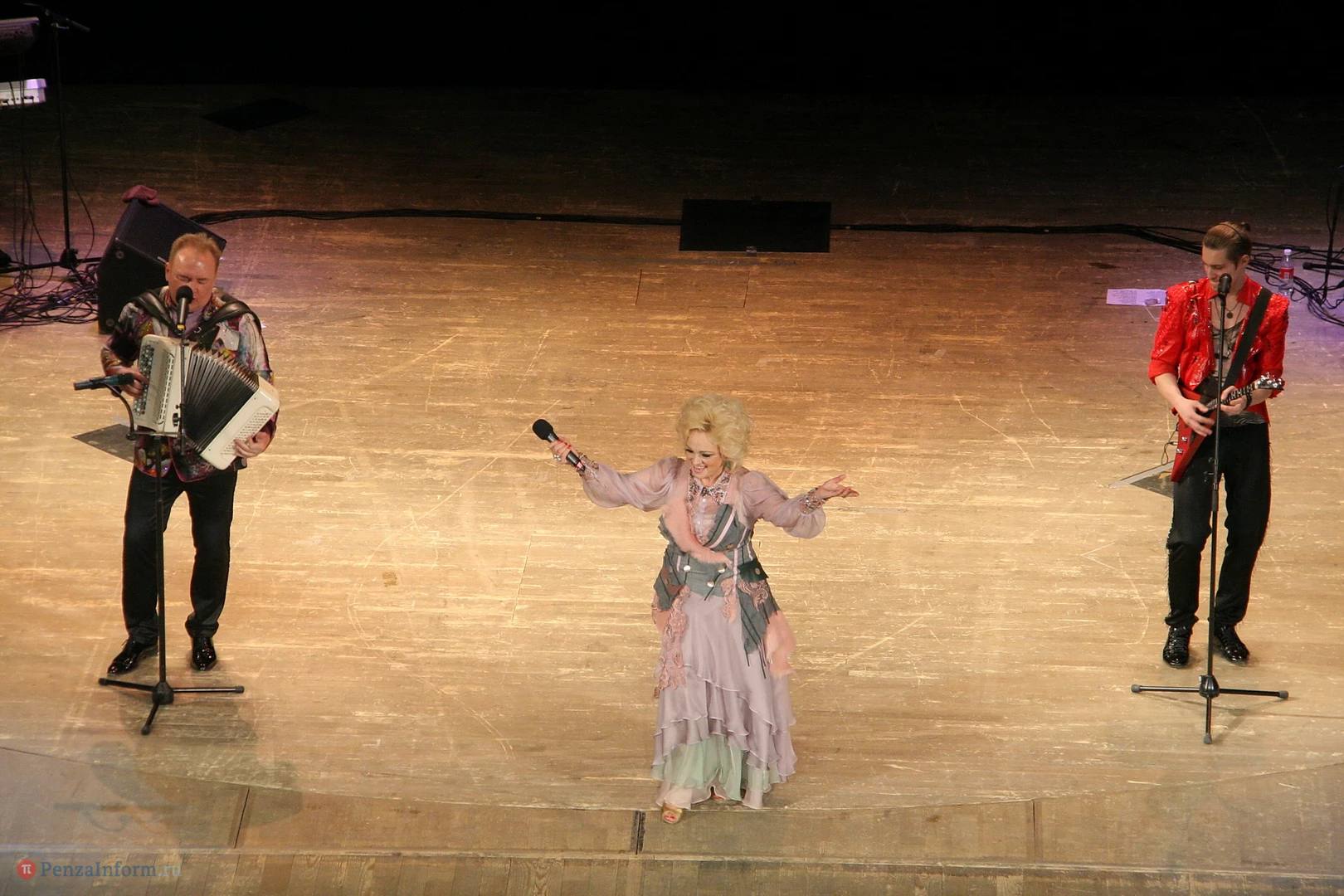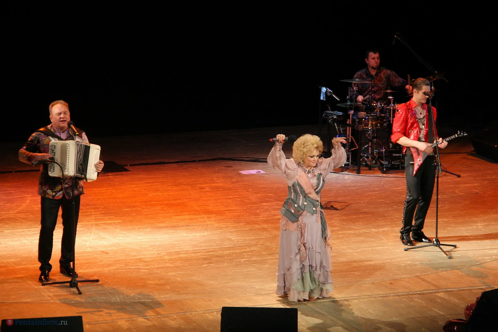 14 марта на сцену Пензенского драматического театра вышли народная артистка России Надежда Кадышева и легендарный ансамбль «Золотое кольцо». Исполнители собрали полный зал. Пензенские поклонники встретили звезду на ура и пританцовывали прямо на местах.