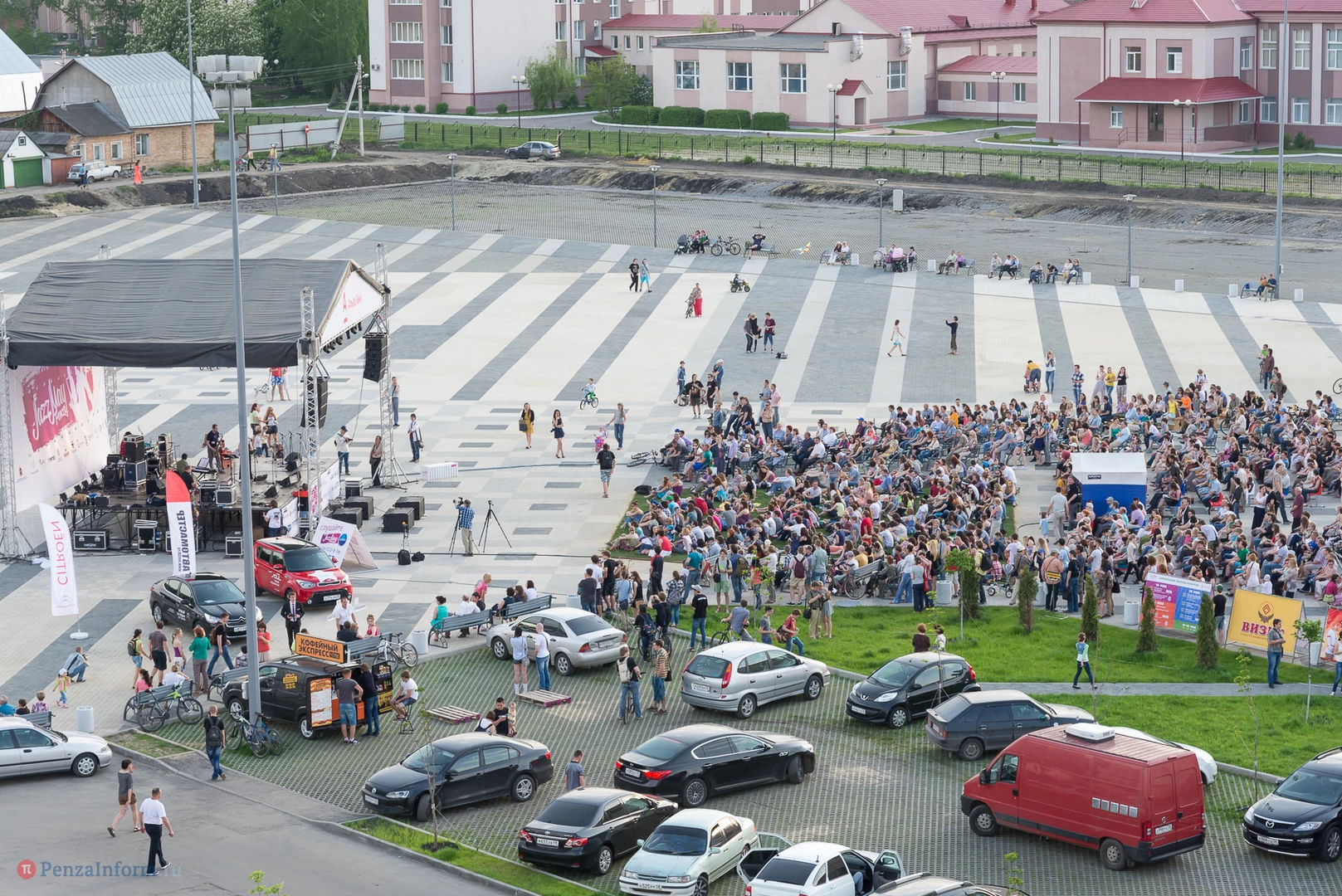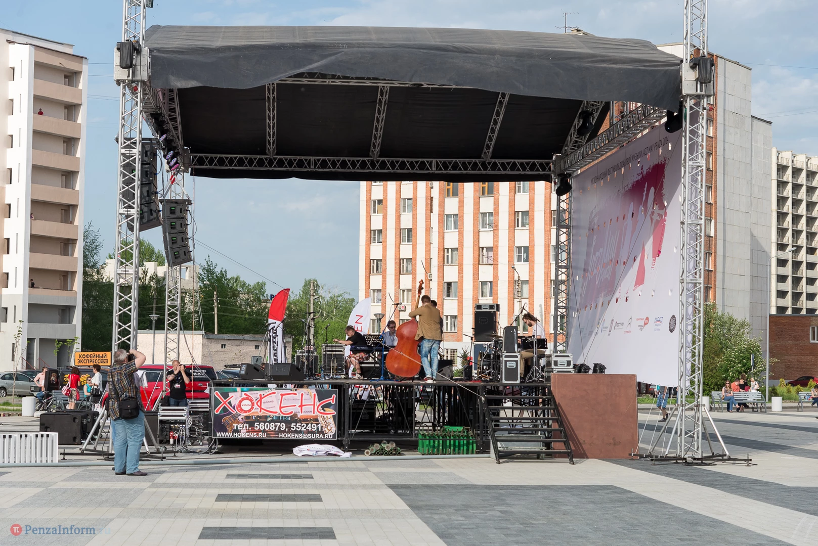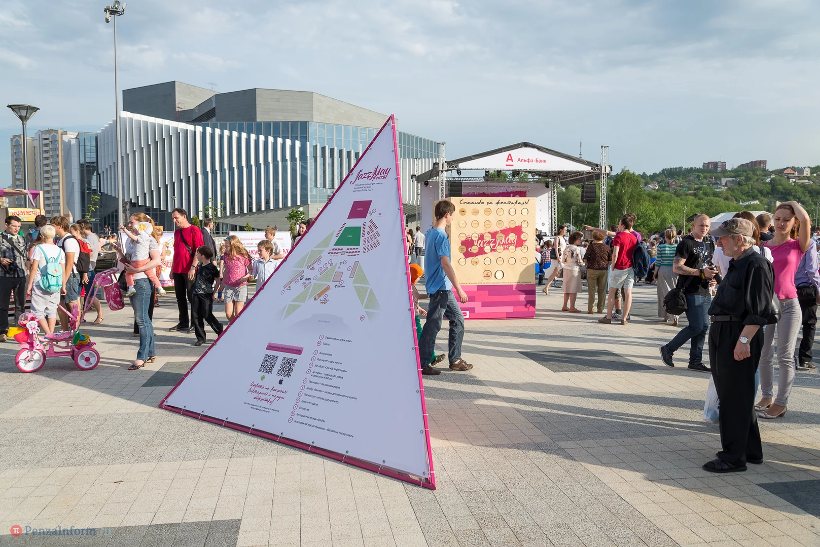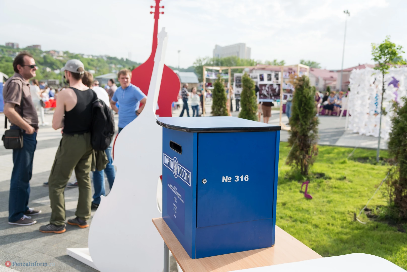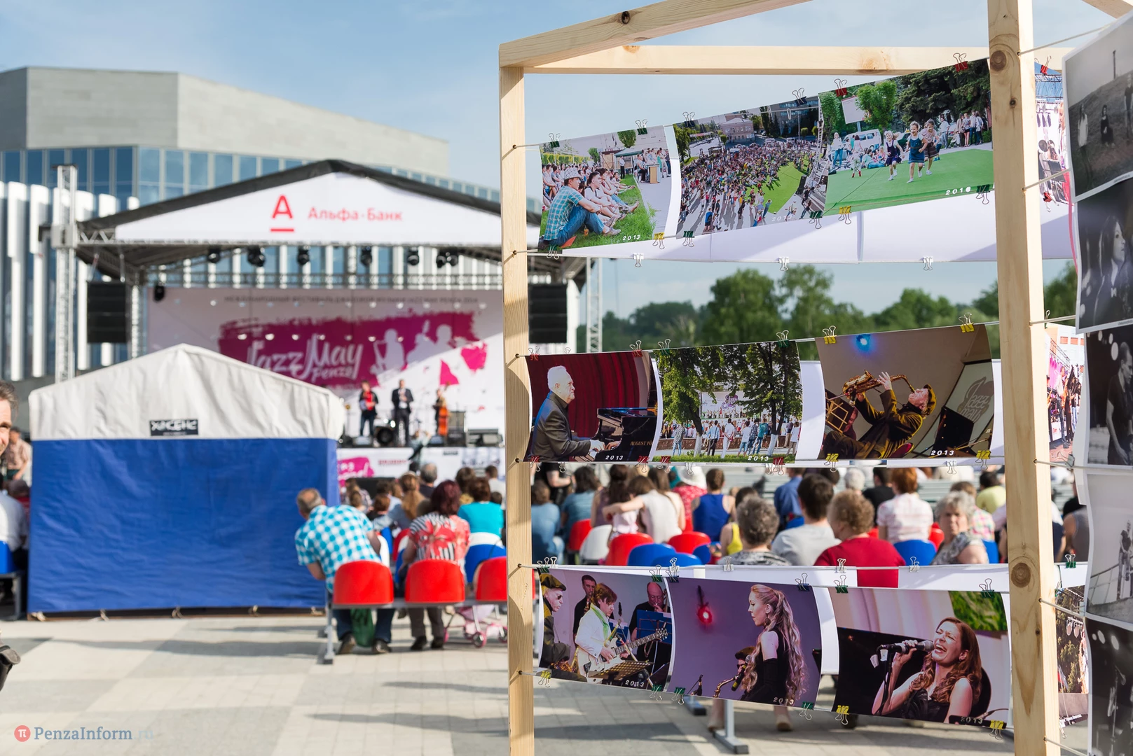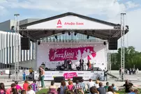 На газоне выросли джазовые ноты. Это символ того, что в Пензу вернулся Jazz May. Уже в четвертый раз. Традиционный фестиваль в этом году проходит на новой площади, пока безымянной.