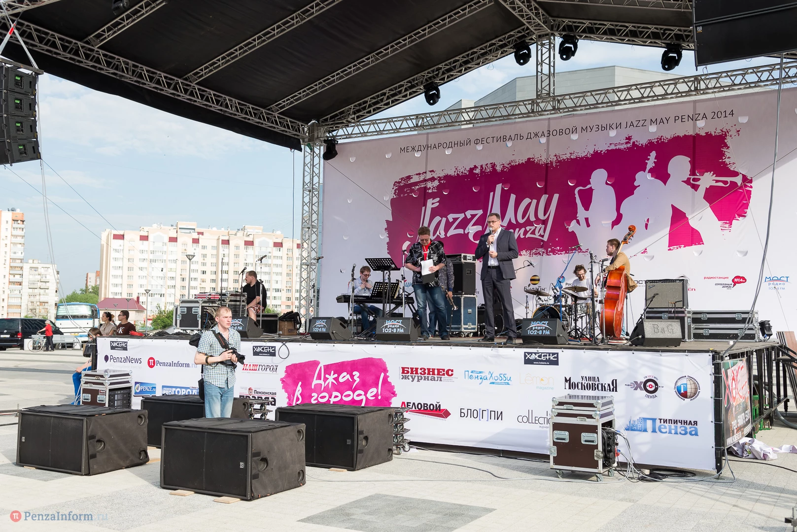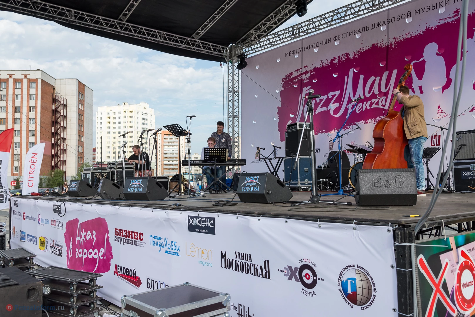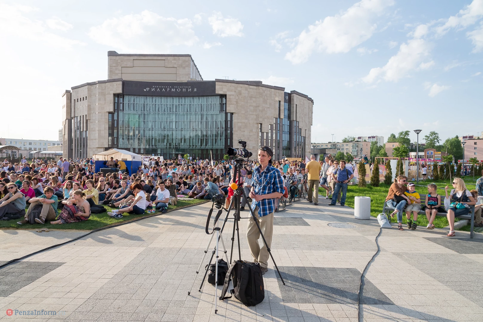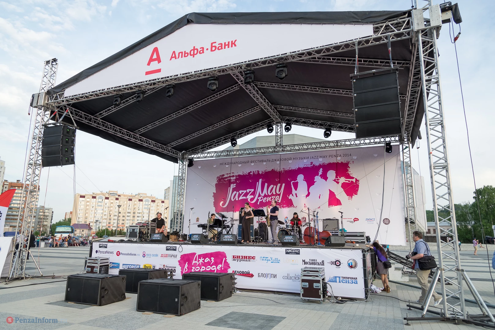 На газоне выросли джазовые ноты. Это символ того, что в Пензу вернулся Jazz May. Уже в четвертый раз. Традиционный фестиваль в этом году проходит на новой площади, пока безымянной.