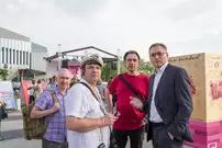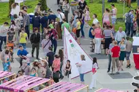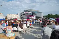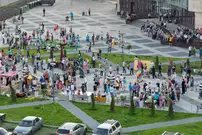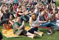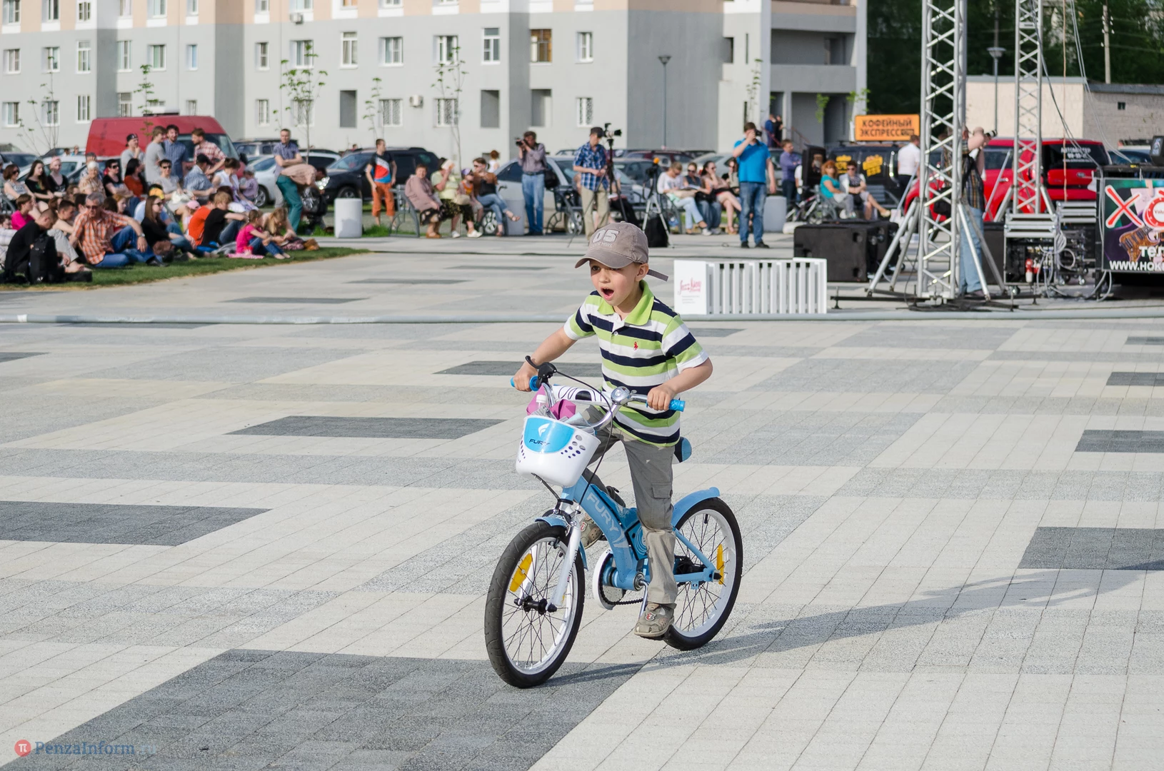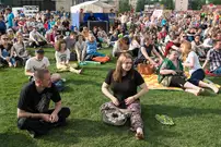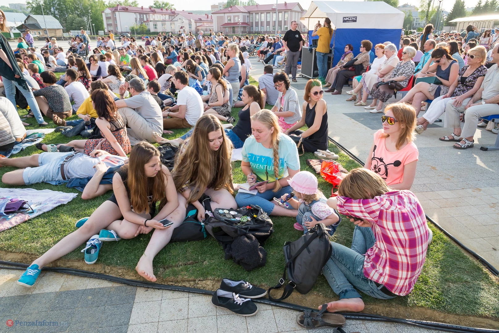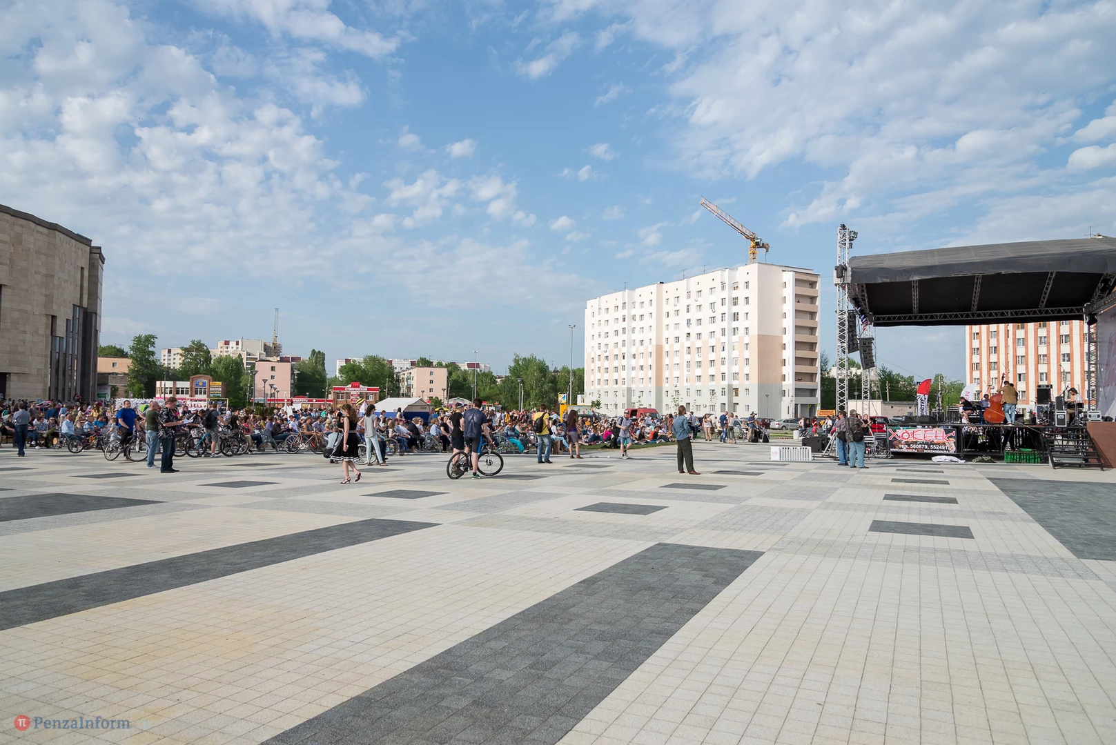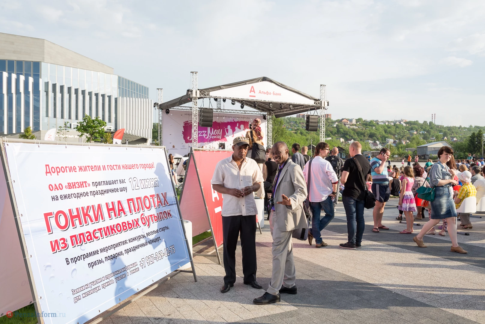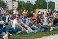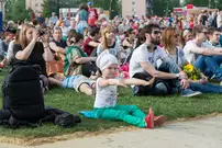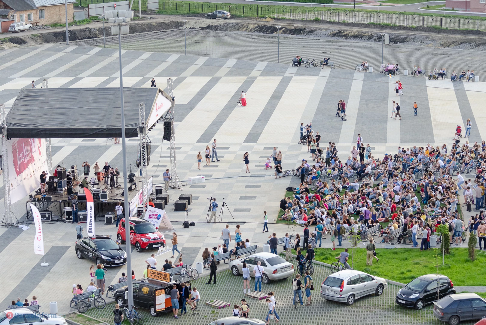 На газоне выросли джазовые ноты. Это символ того, что в Пензу вернулся Jazz May. Уже в четвертый раз. Традиционный фестиваль в этом году проходит на новой площади, пока безымянной.
