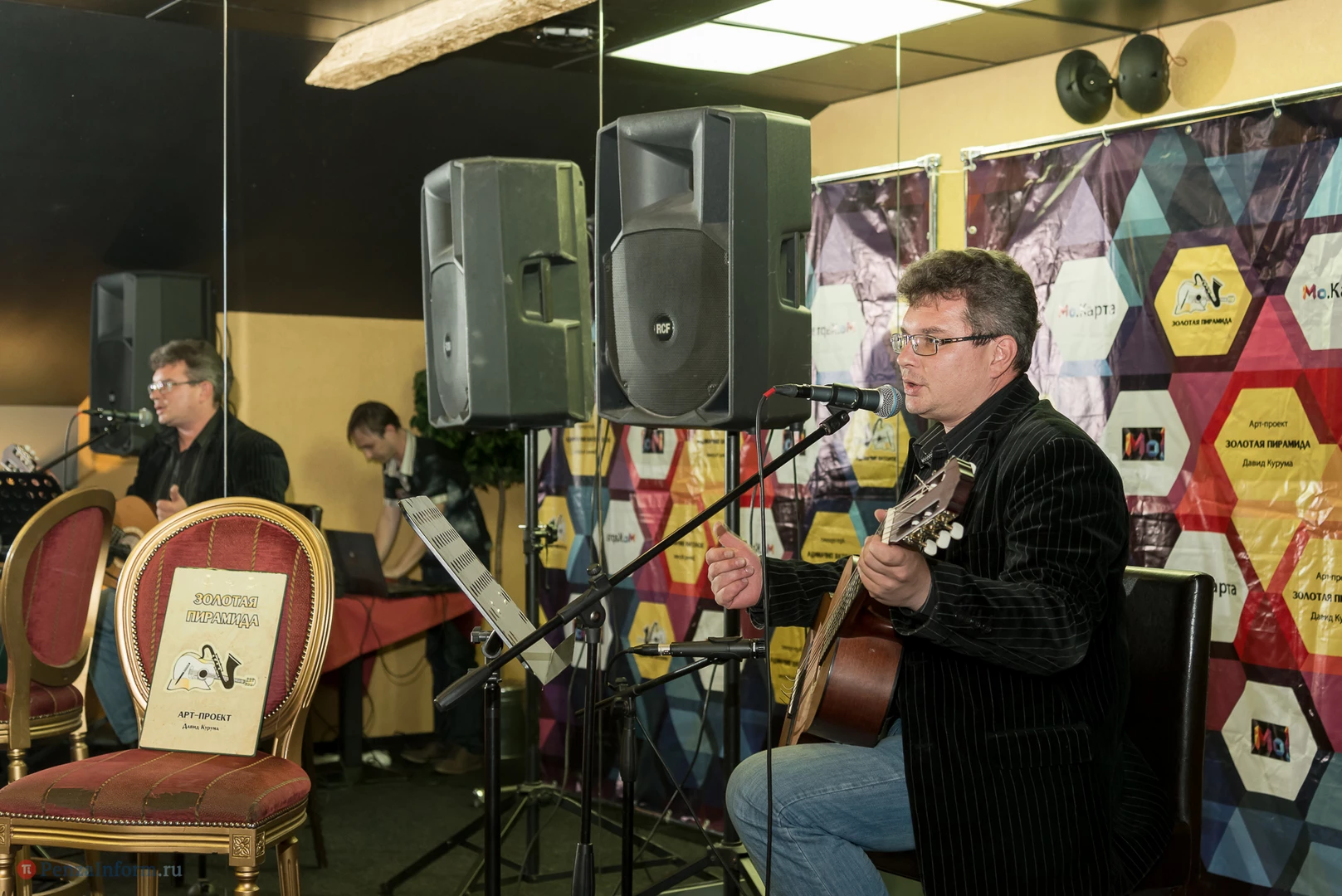 Состоялся очередной концерт в рамках арт-проекта «Золотая пирамида». Давид Курума пригласил на творческую встречу «Четвертая струна» журналистов Владислава Белякова, Павла Морозова и Ирину Одуло.