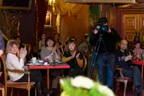 Голливудский композитор и певец Джордж Ходос - наш земляк, но уже давно и успешно выступает в США. Это редчайшая история для российского музыканта. Как и год назад, Джордж выступил перед своими многочисленными друзьями и поклонниками в одном из залов кинокомплекса "Современник", на этот раз в "Чарли Gold", при неизменном аншлаге.