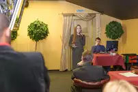 В КК «Современник» прошло необычное мероприятие: чтение стихов в формате открытого микрофона. Организатором выступила «Молодая гвардия», а посвящена встреча была А. С. Пушкину. Его стихи и звучали в стенах релакс-кафе «Фараон Hall».