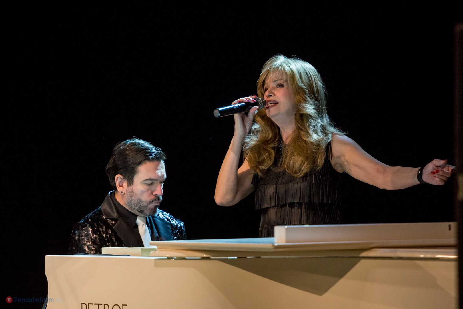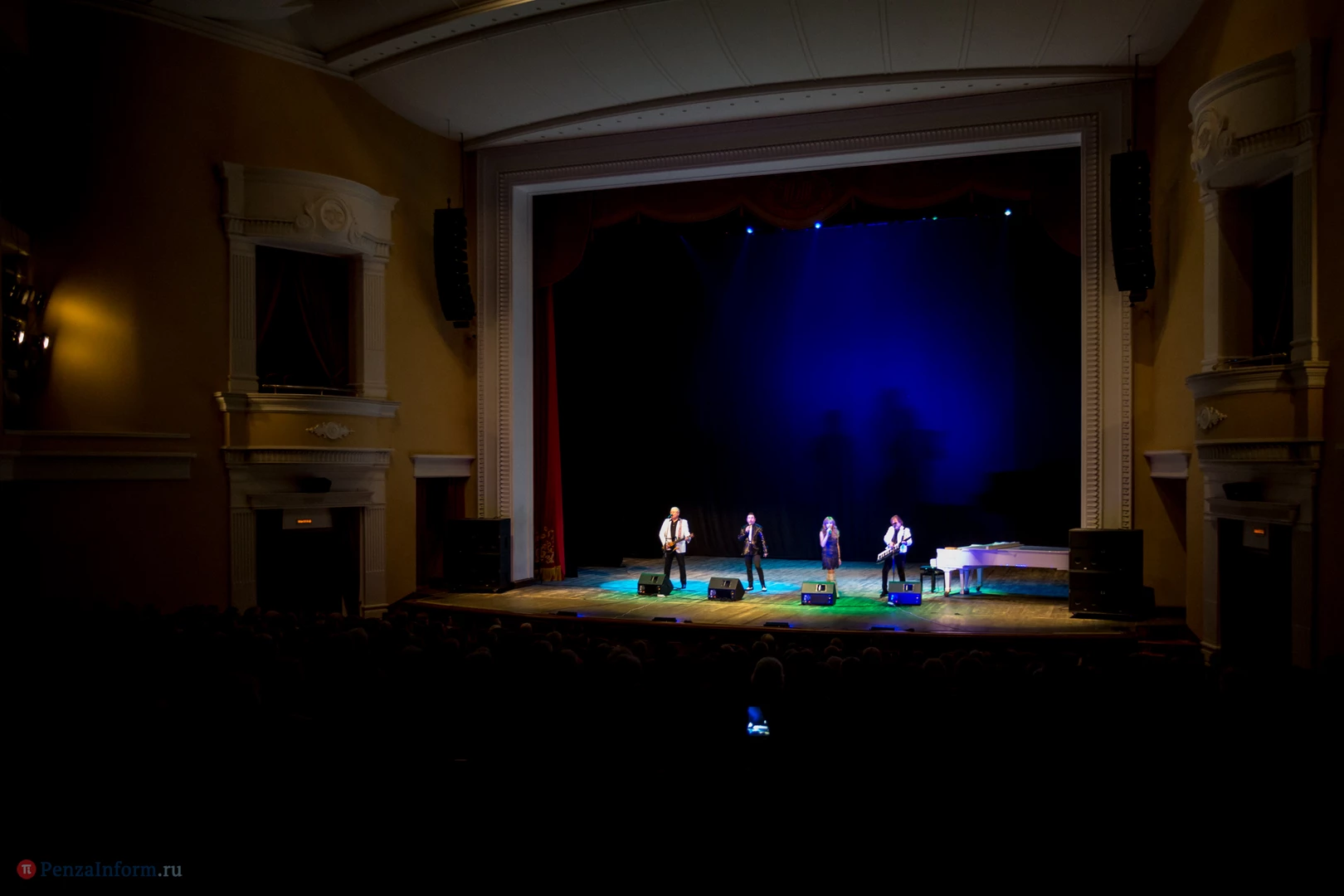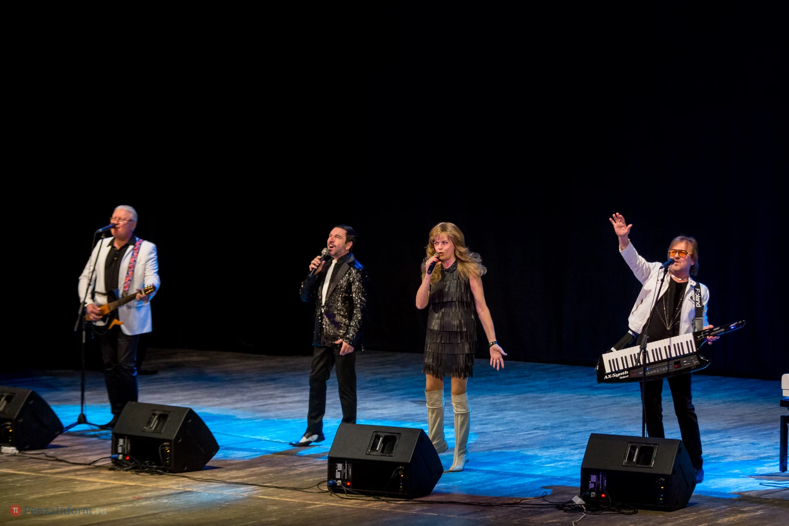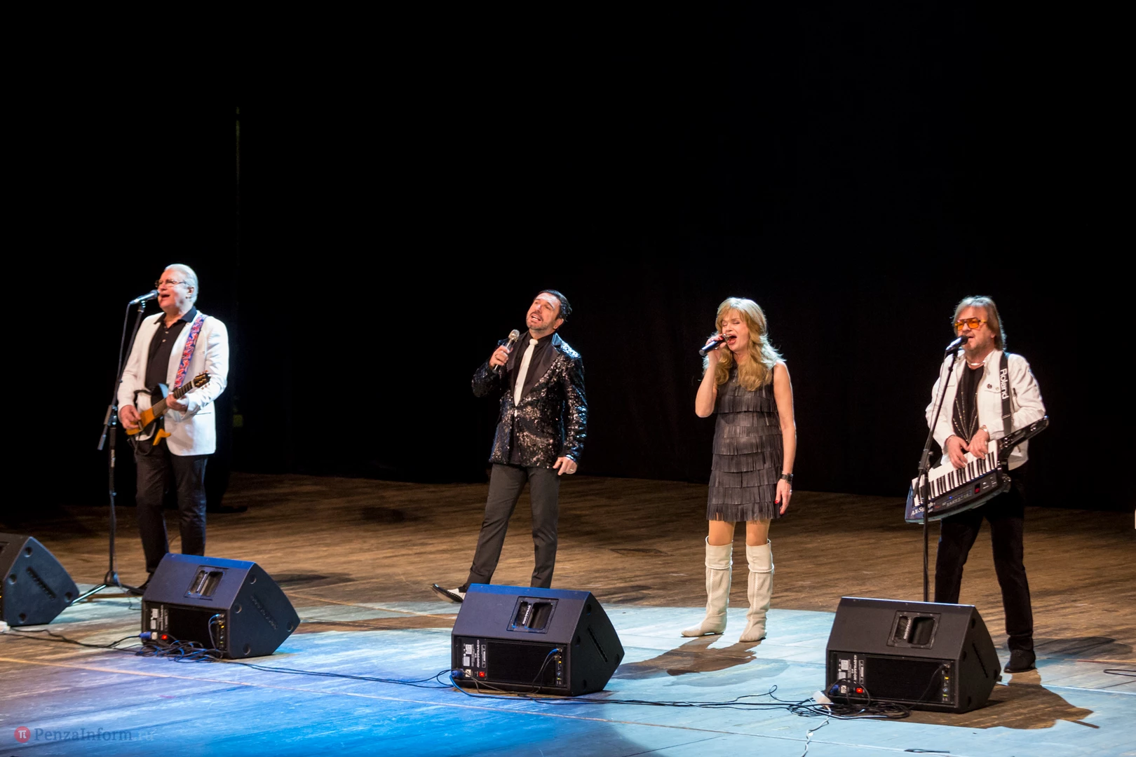 В Пензу приехали Елена Преснякова, Александр Нефедов, Георгий Власенко и Олег Слепцов. В таком составе ВИА «Самоцветы» выступает сейчас.