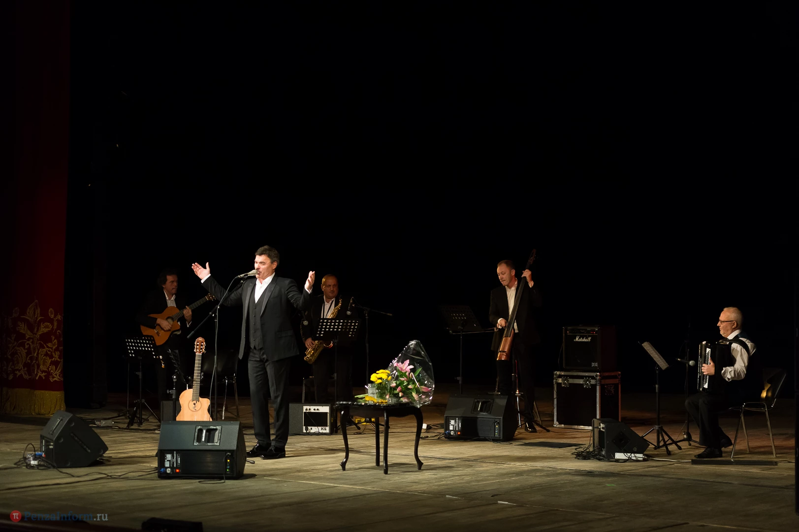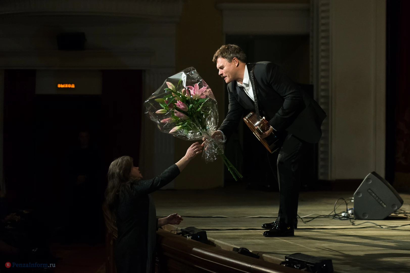 В Пензе состоялось выступление заслуженного артиста России Евгения Дятлова. Музыкант владеет скрипкой и гитарой, обладает красивым, редкого тембра баритоном. Неповторимая камерная манера исполнения песен и романсов, звучащих в спектаклях и телефильмах с его участием, а также в концертных залах, неизменно привлекает зрителей.