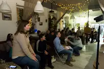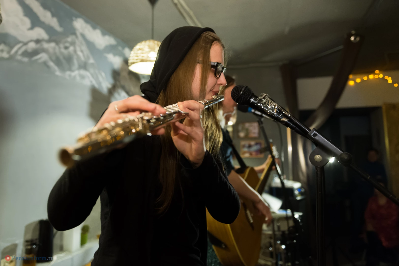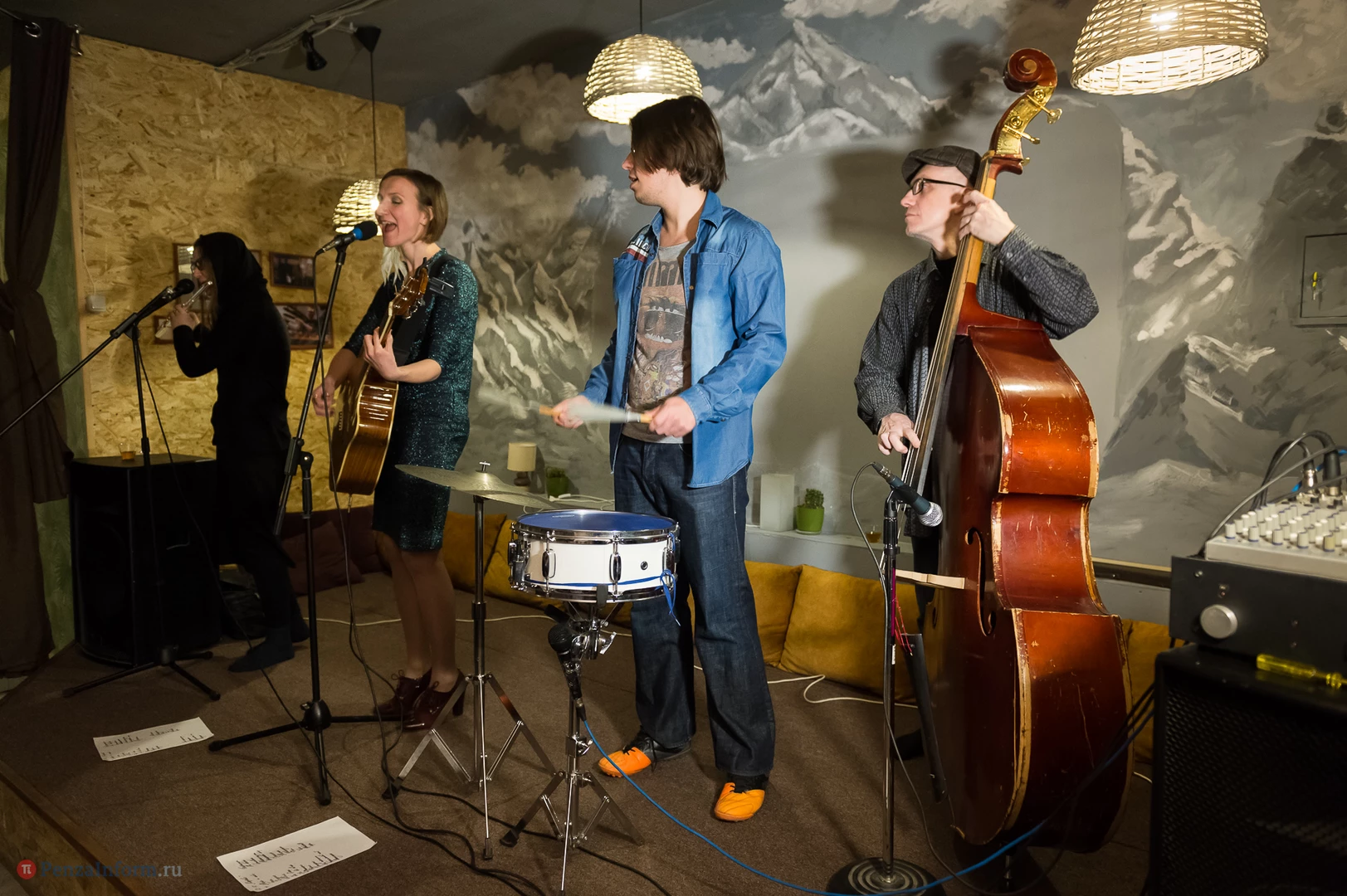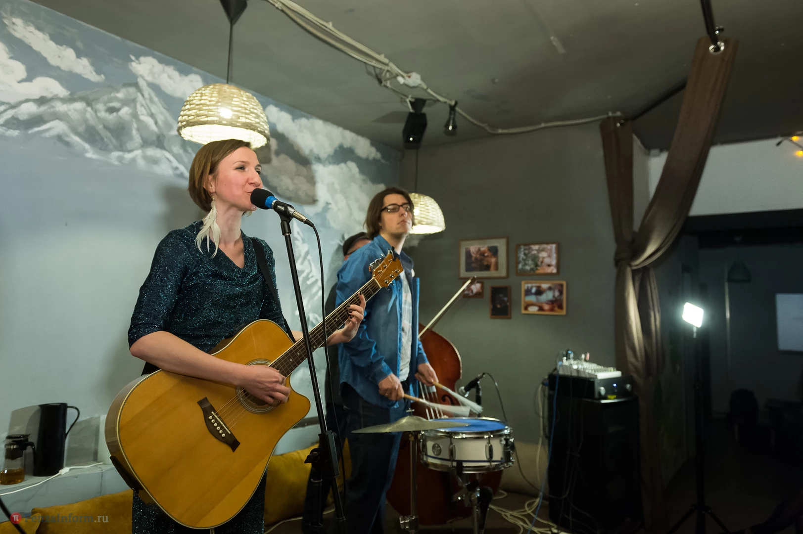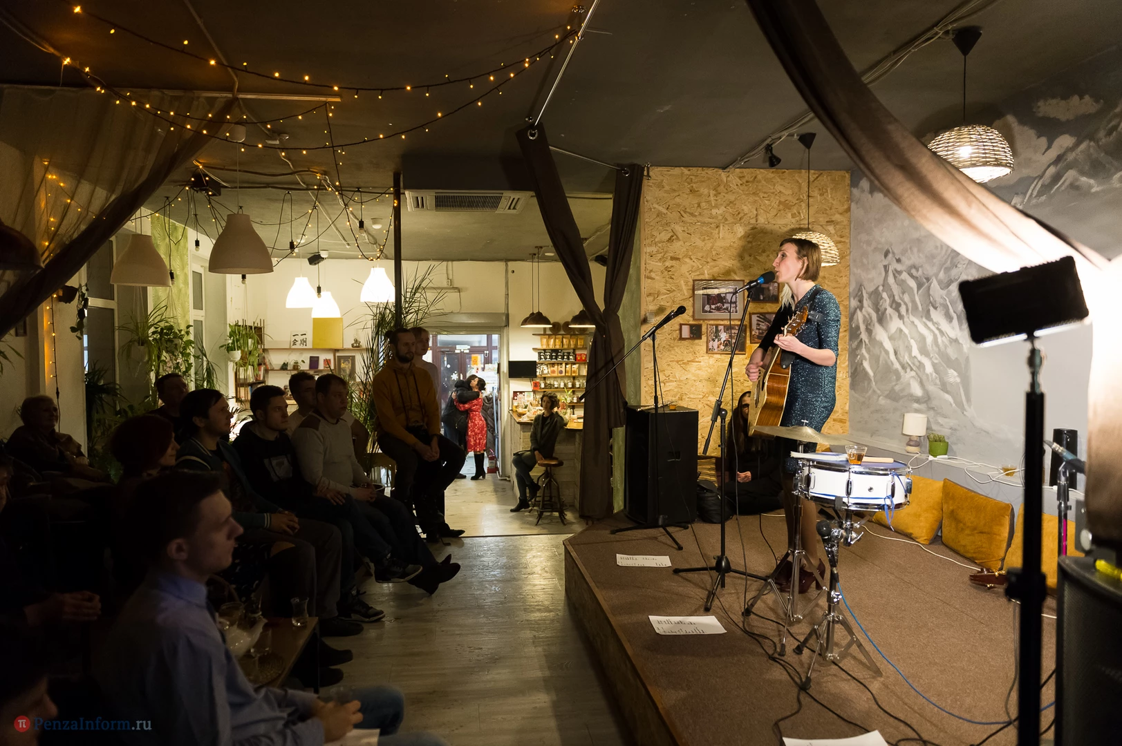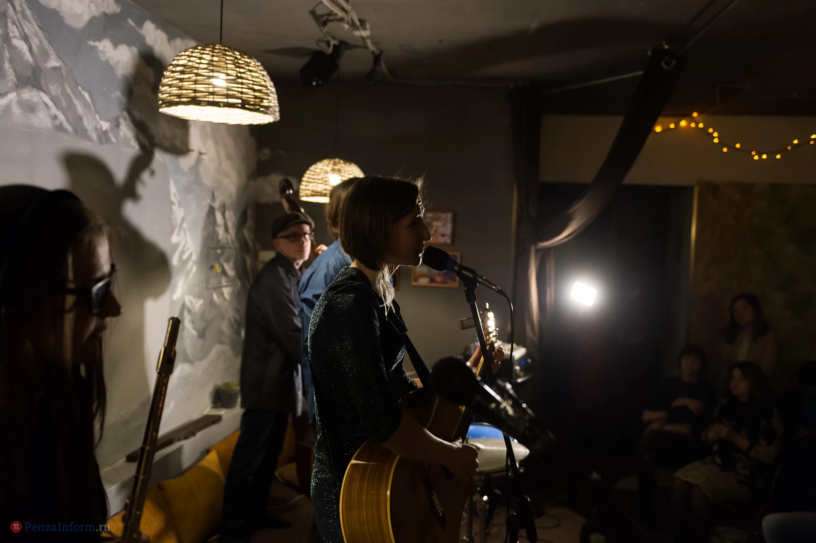 Состоялся акустический концерт Ксении Солдаткиной с новым коллективом «Студенты прохладной жизни». Ксения поет о любви и радости, о Франции и полетах, о пингвинах и бусах - и о Пензе.