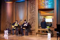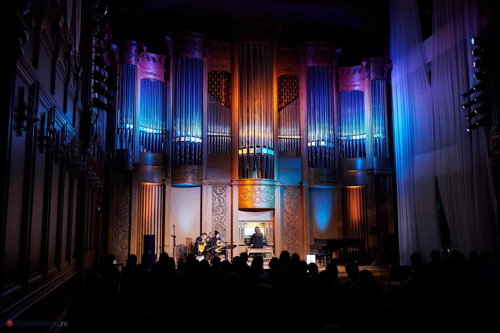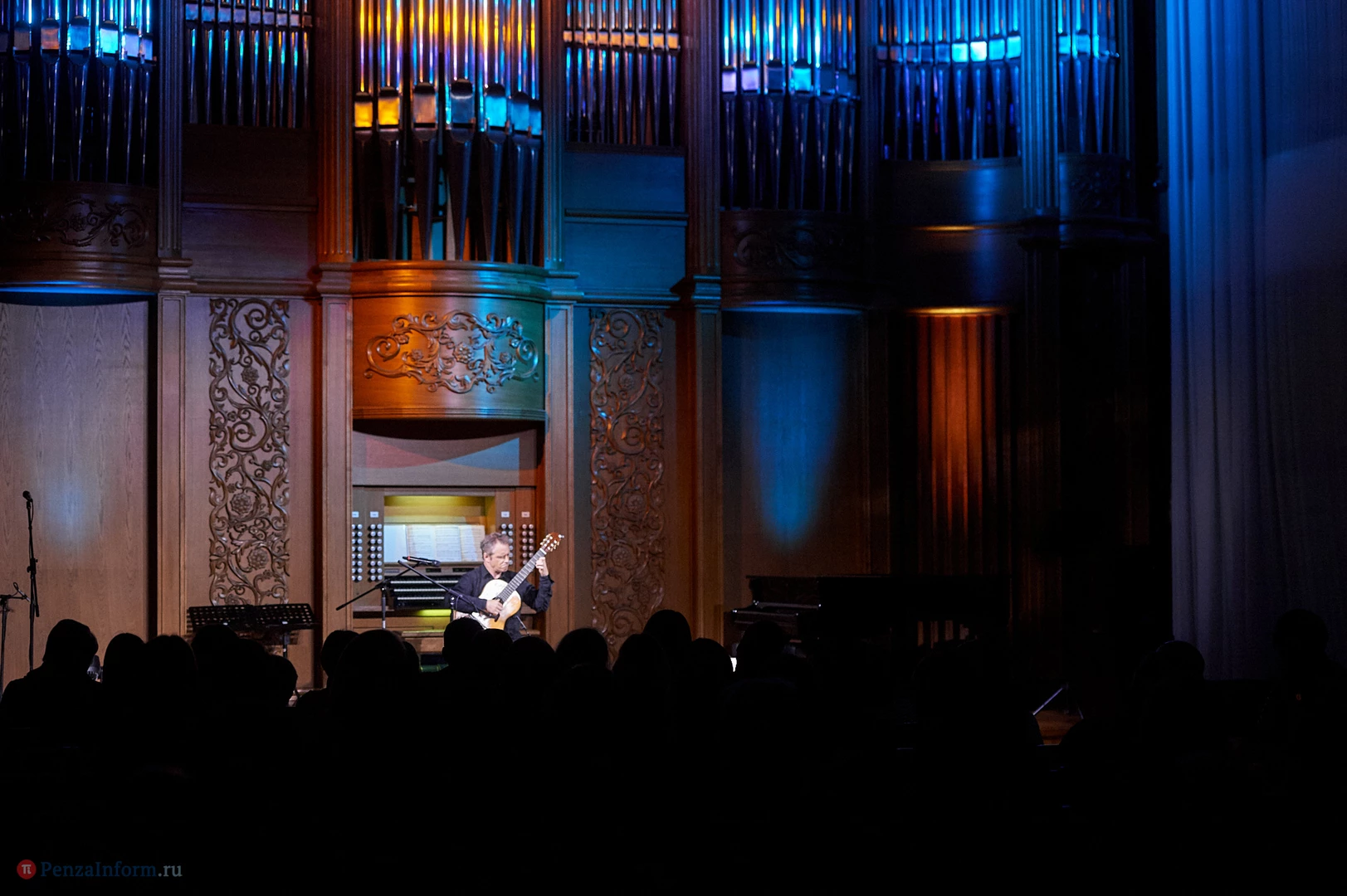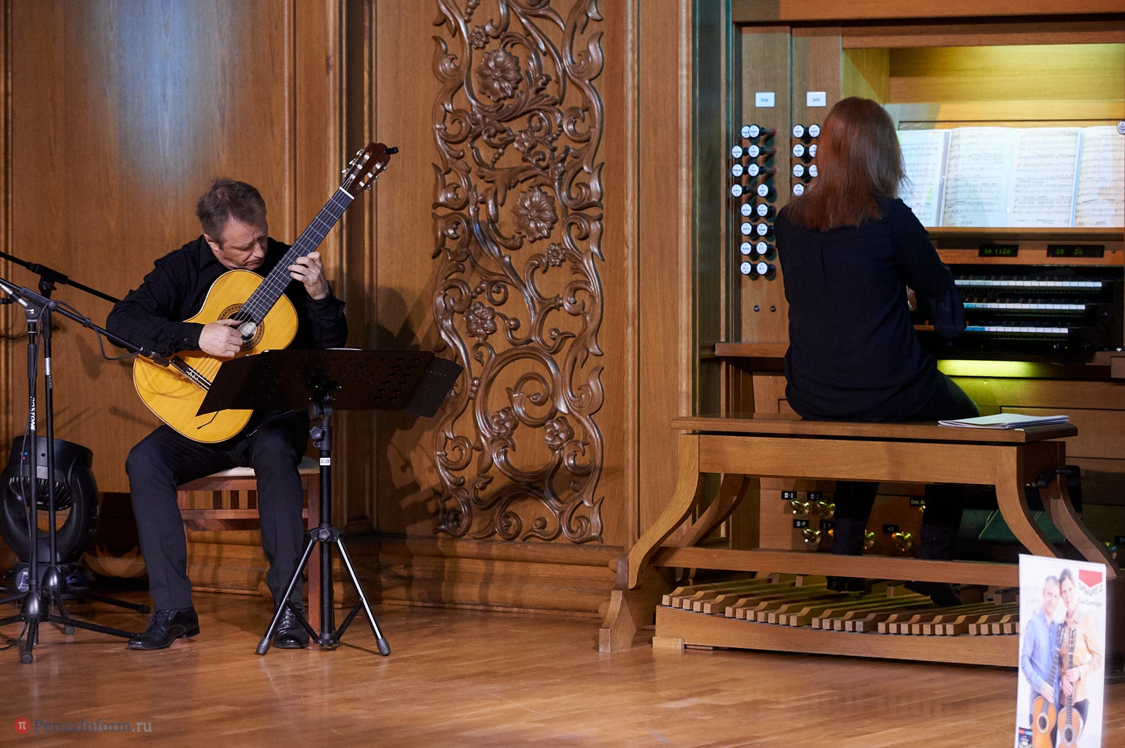 В органном зале Пензенской областной филармонии звучит музыка разных жанров и направлений. Например, благодаря международному фестивалю Jazz May зрителей уже не удивишь джазовыми композициями, которые исполняются на органе. Но в минувшее воскресенье пензенские любители музыки могли услышать действительно необычное звучание: две гитары в сопровождении органа.