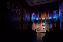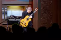 На сцене выступил виртуоз игры на гитаре Филипп Вилла (Франция) вместе с россиянками Анастасией Максимкиной (гитара) и Софьей Семьяновой (орган).
