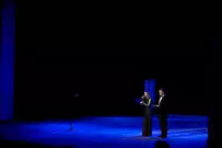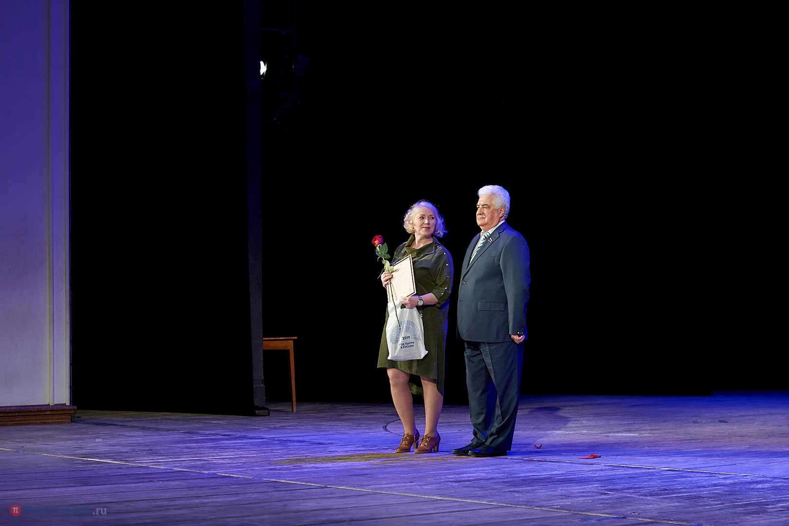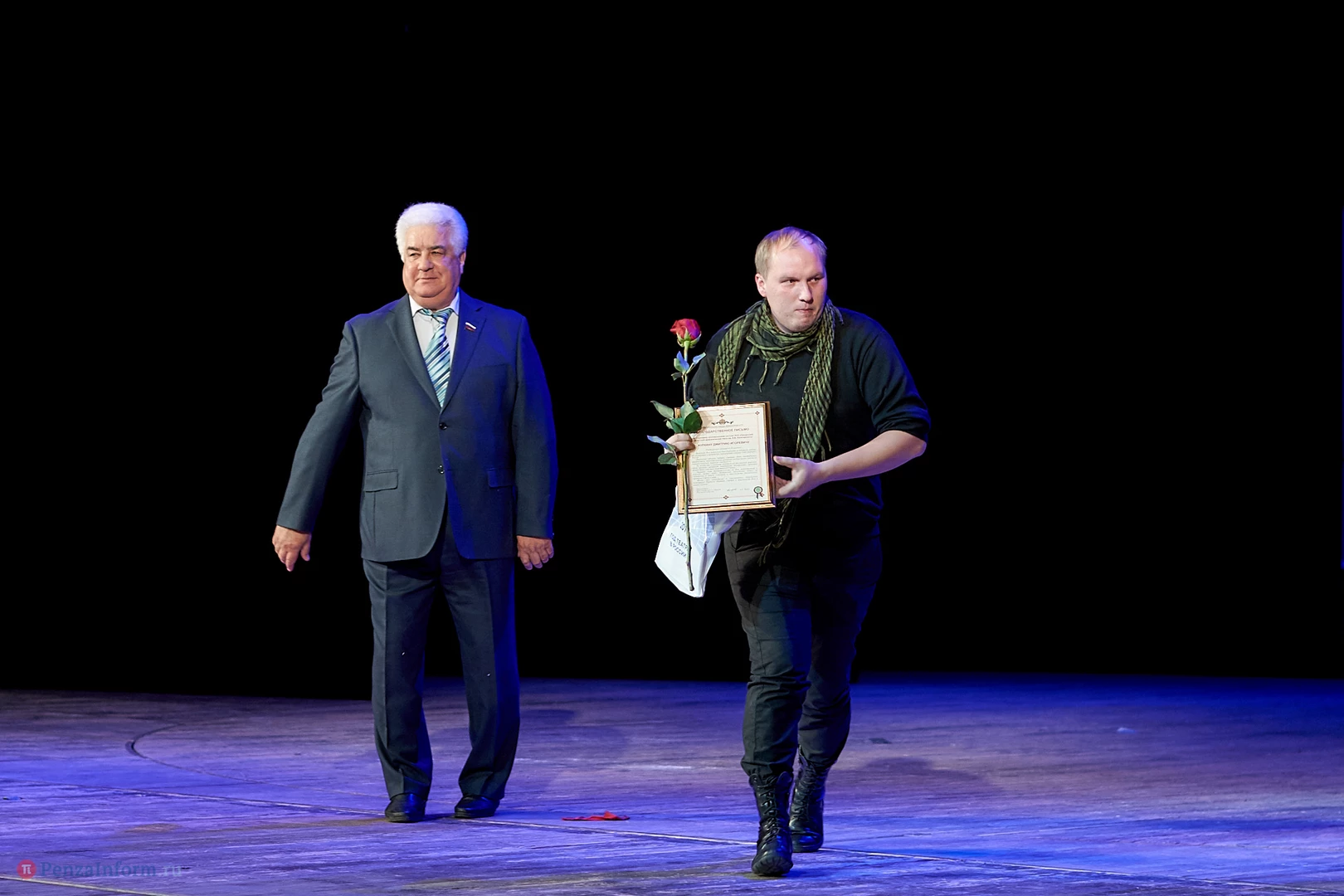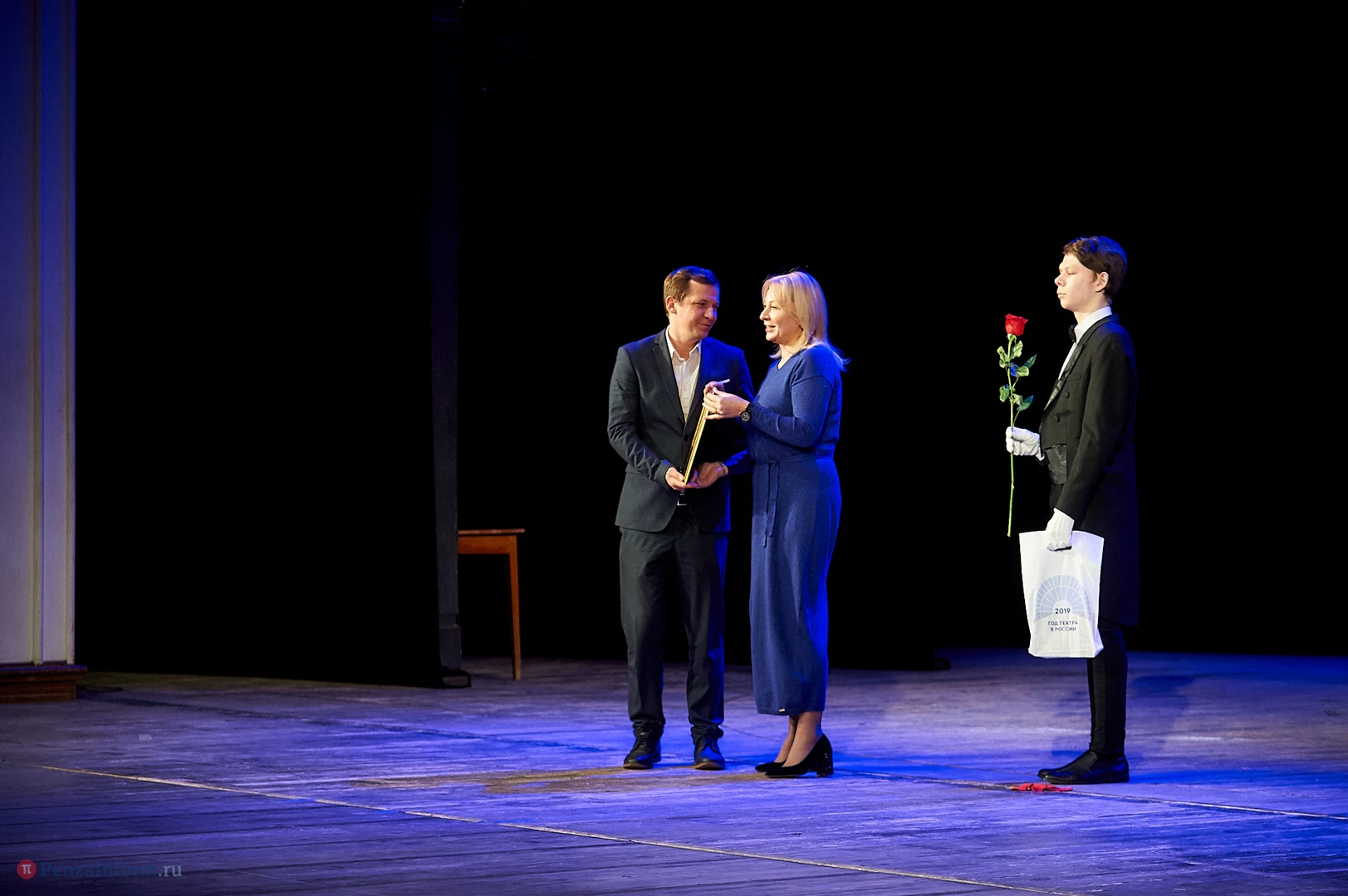 На главной пензенской театральной сцене состоялась торжественная церемония закрытия Года театра. После официальной части зрителей ждал настоящий подарок: удивительный моноспектакль Георгия Иобадзе (московский «Театр на Юго-Западе») «Я, бабушка, Илико и Илларион».