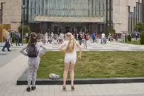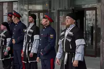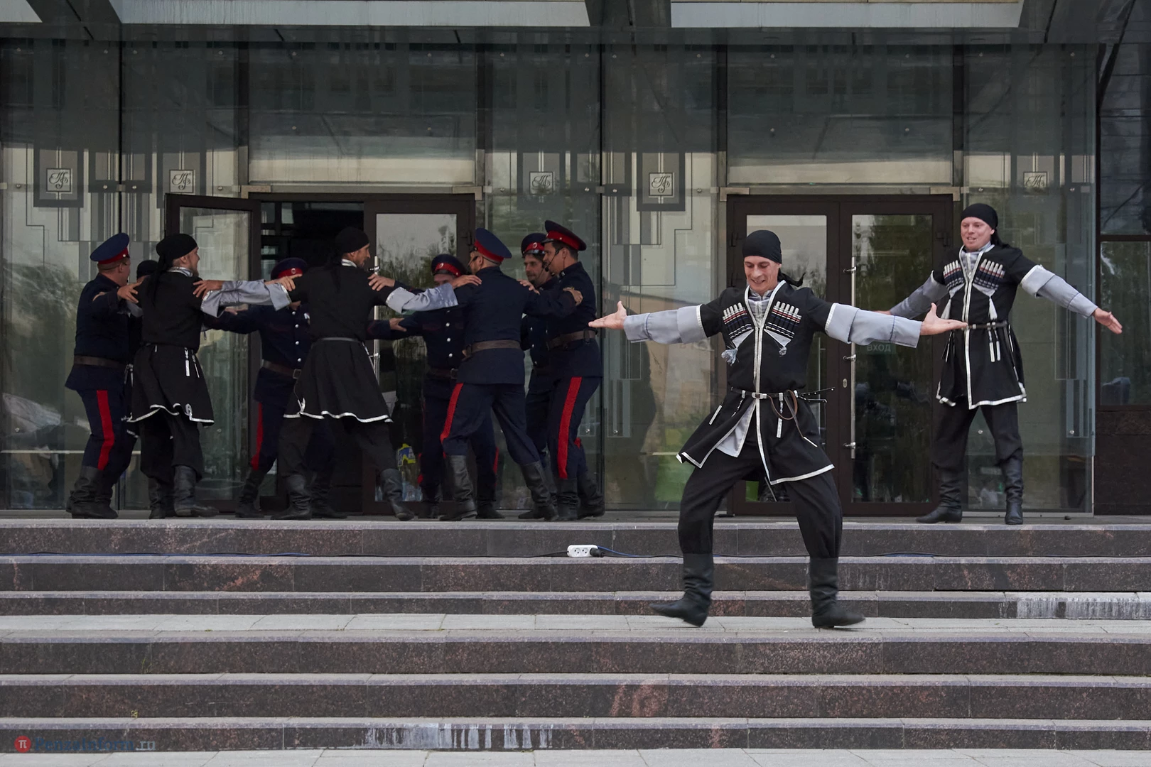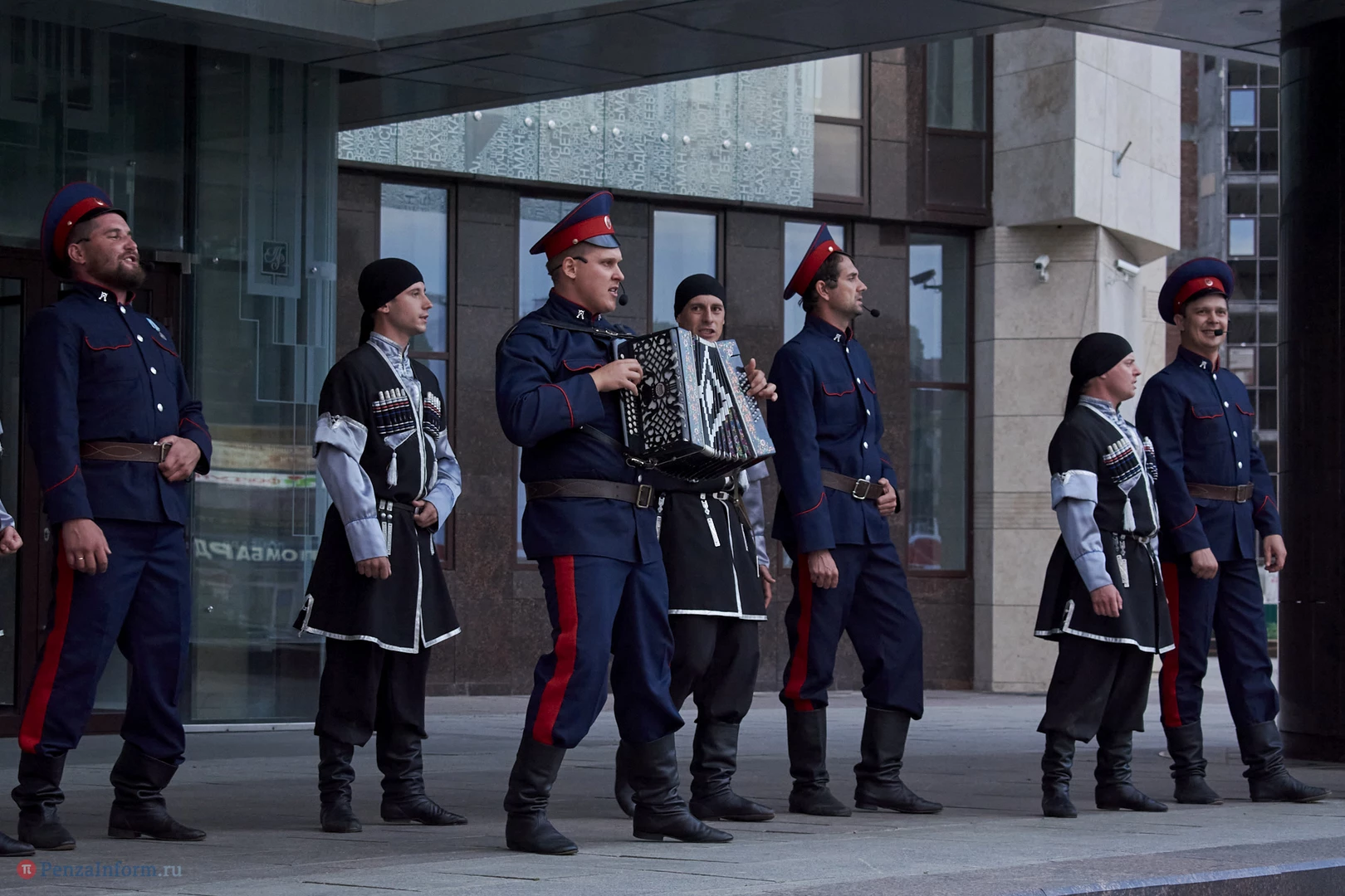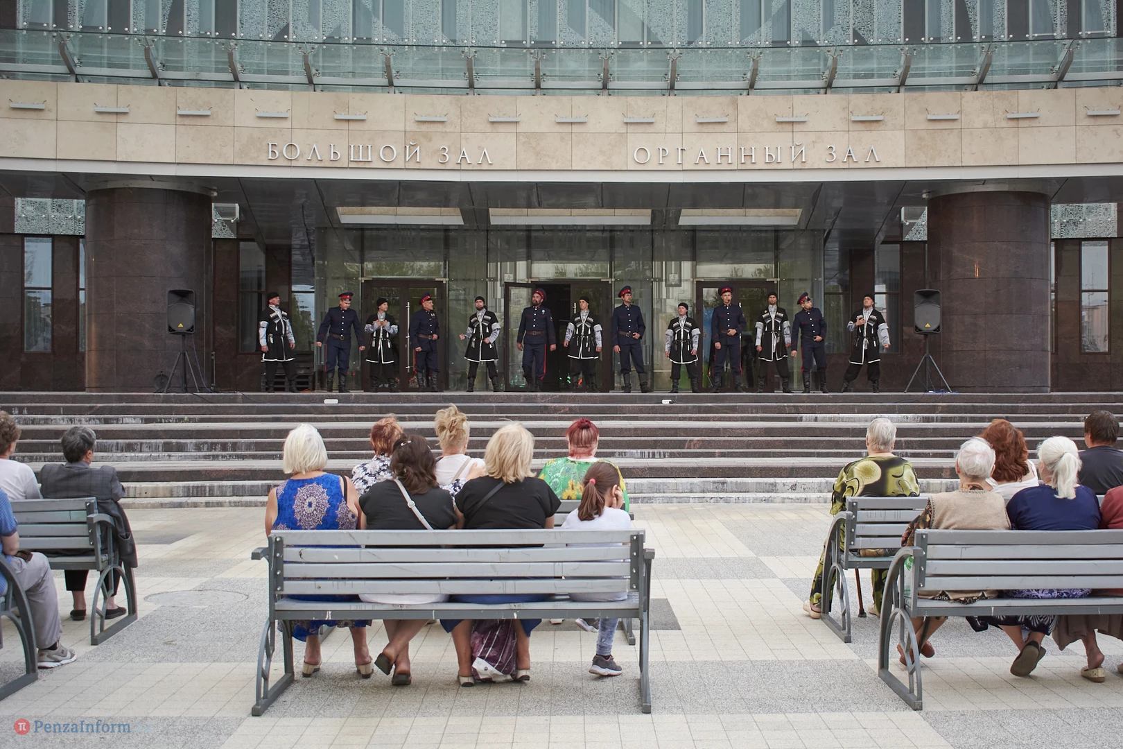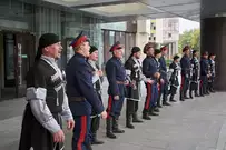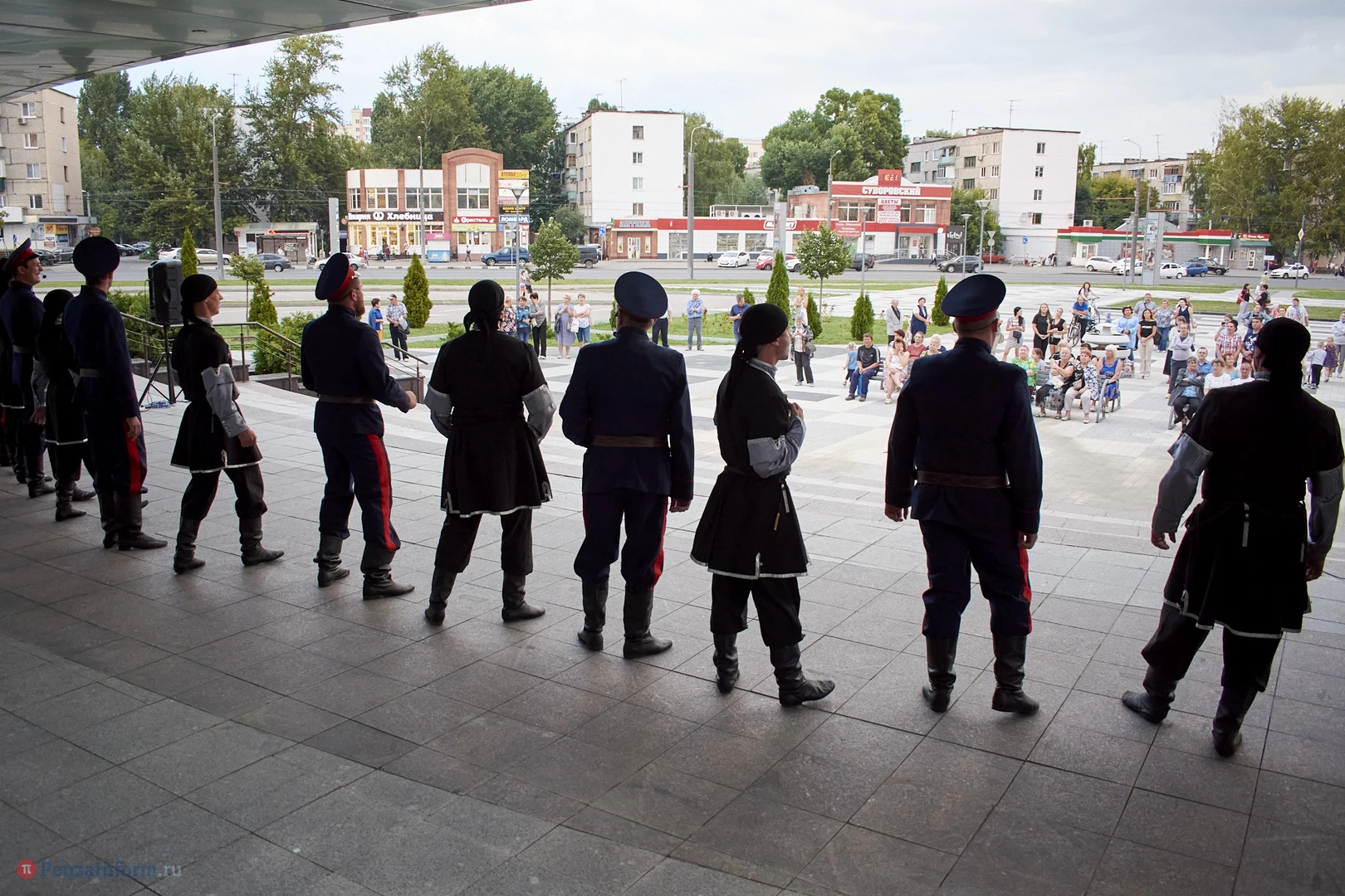 Ансамбль песни и танца «Казачья застава» выступил в рамках акции «Лето в городе» на площадке перед областной филармонией.