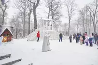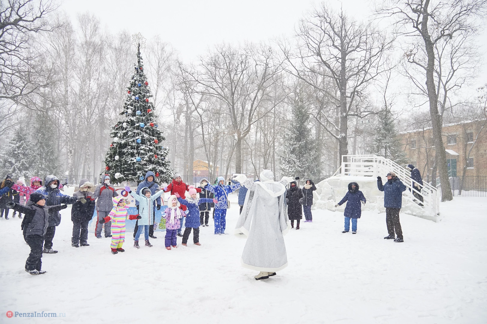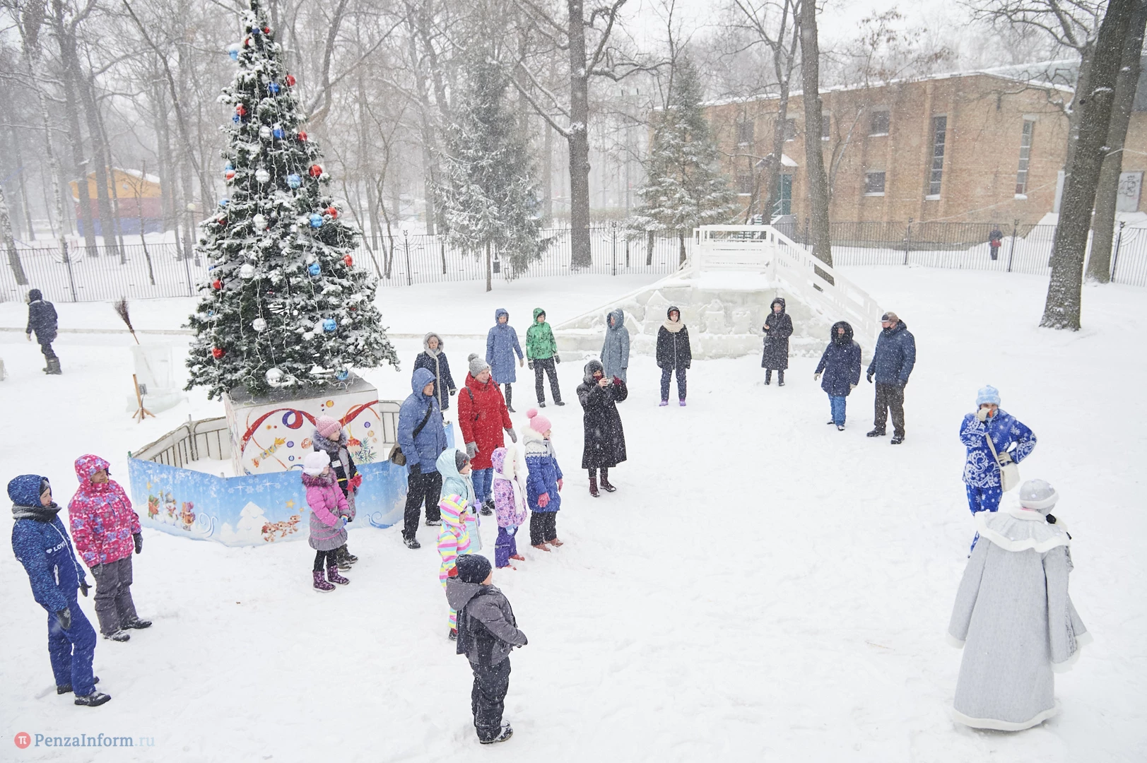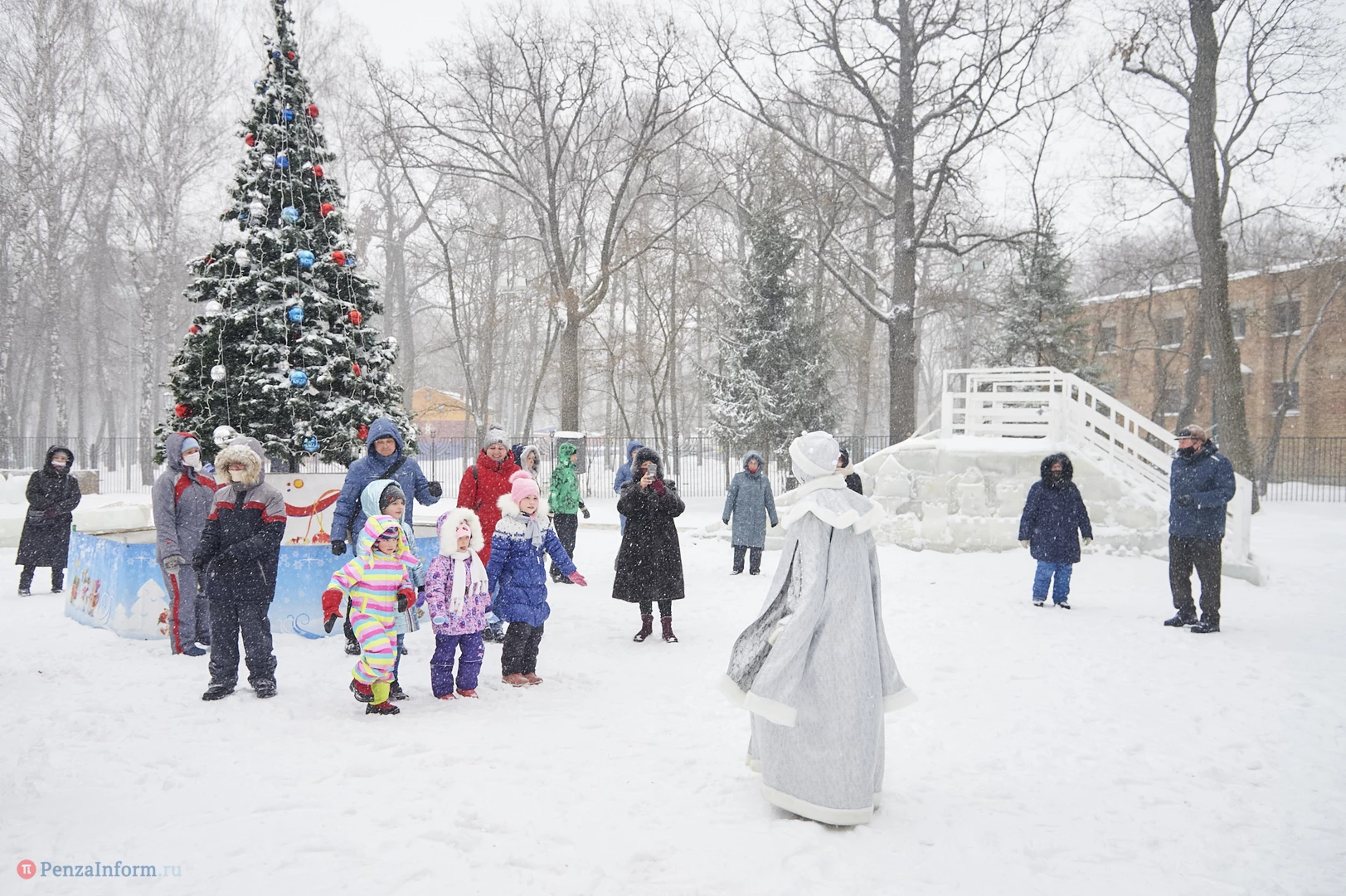 На традиционные встречи под новогодней елкой с Дедом Морозом, Снегурочкой и другими сказочными персонажами приглашает ЦПКиО имени В. Г. Белинского. В отличие от привычных до пандемии хороводов и контактных игр гости явно стараются держаться на дистанции, да программа праздника и не предусматривает близкого взаимодействия. Неизменным остается только дух Нового года.