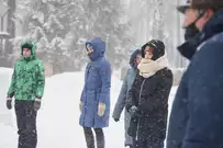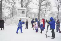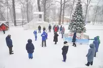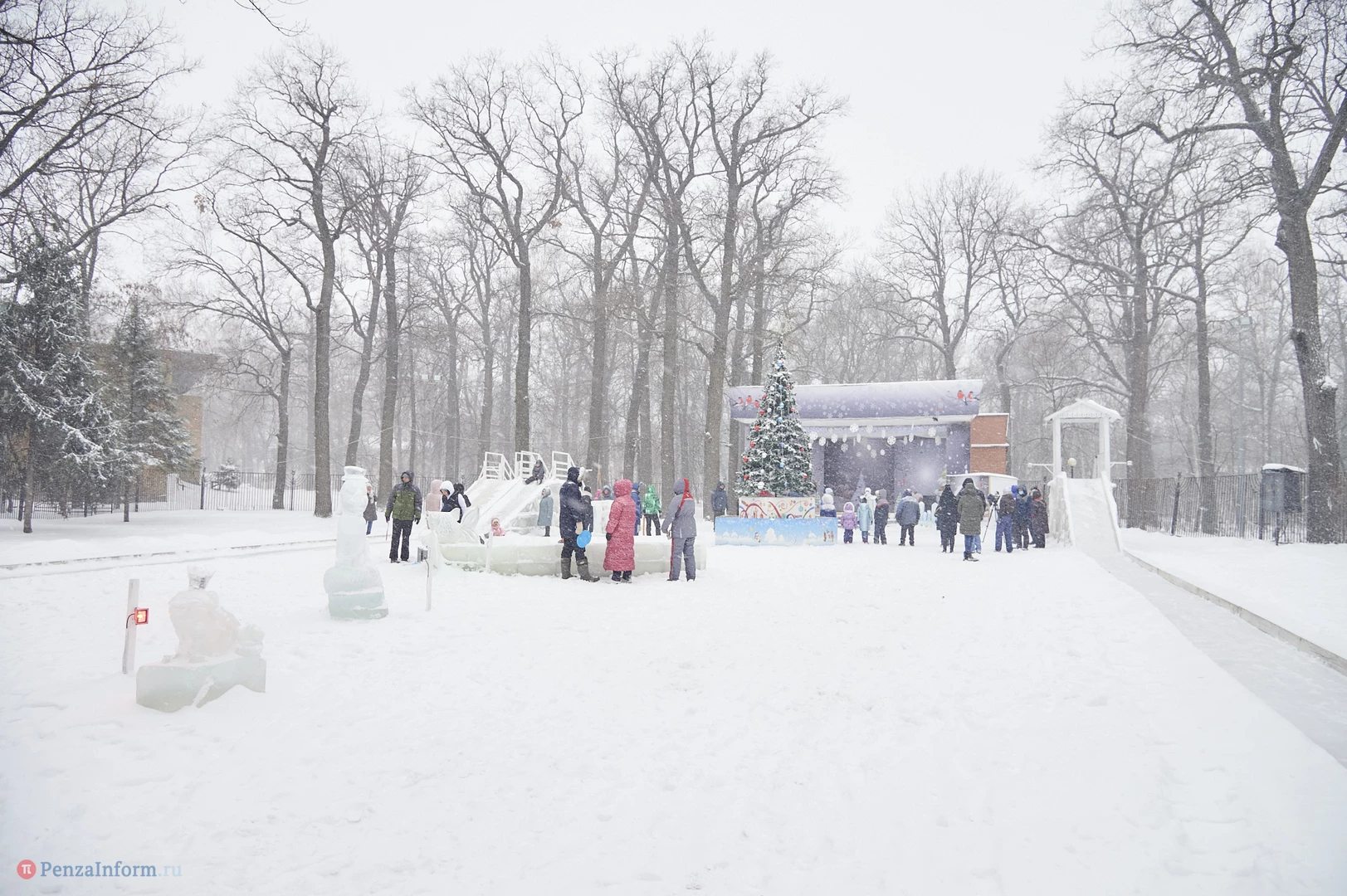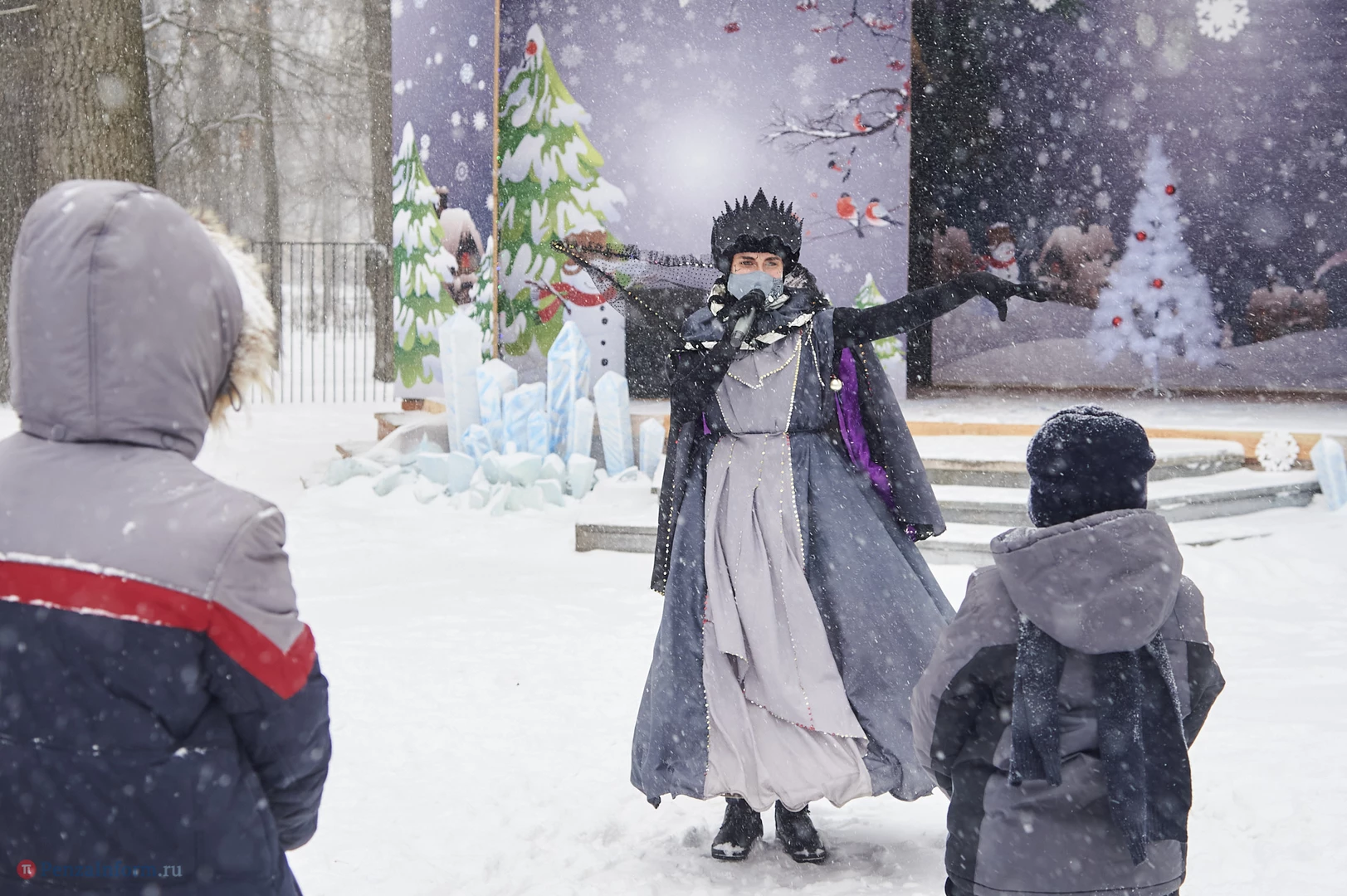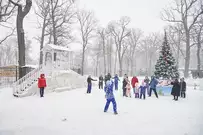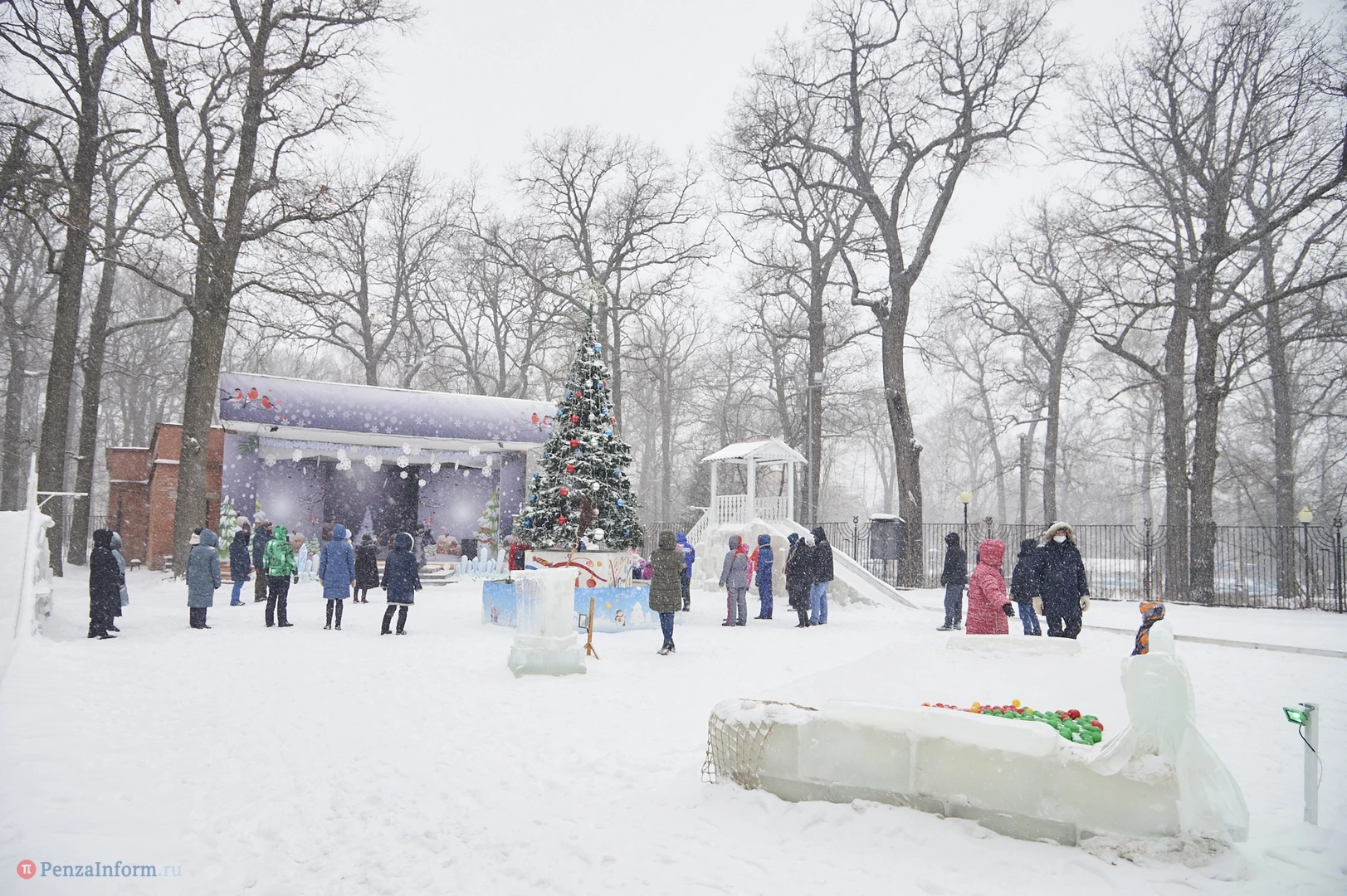 На традиционные встречи под новогодней елкой с Дедом Морозом, Снегурочкой и другими сказочными персонажами приглашает ЦПКиО имени В. Г. Белинского. В отличие от привычных до пандемии хороводов и контактных игр гости явно стараются держаться на дистанции, да программа праздника и не предусматривает близкого взаимодействия. Неизменным остается только дух Нового года.