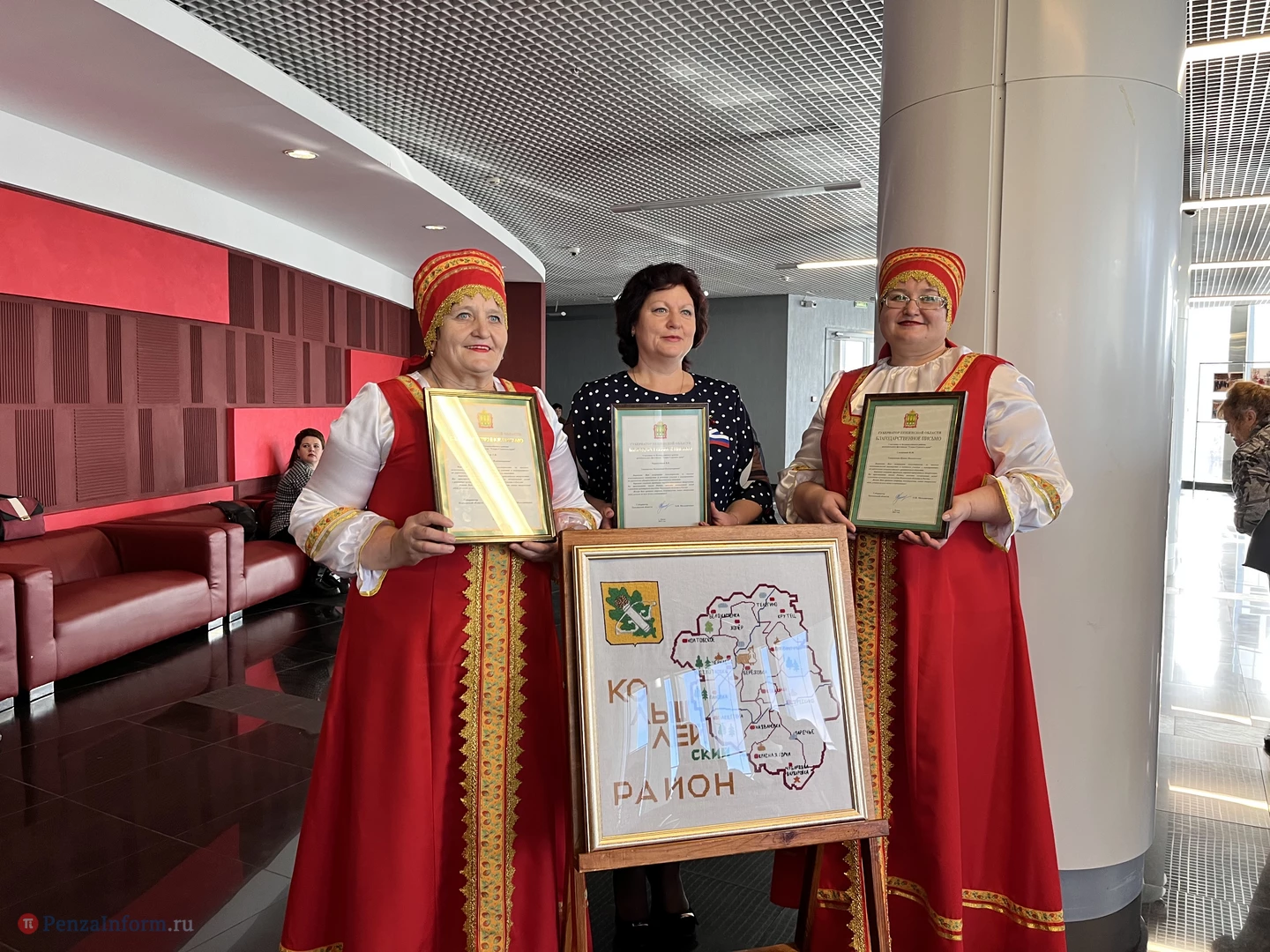 Здесь же открылась выставка «Узоры Сурского края», на которой презентовали вышитые карты муниципальных районов и городских округов Пензенской области. Этот проект объединил более 100 рукодельниц, работавших над вышивкой 32 карт.