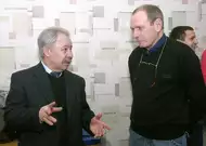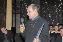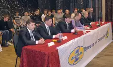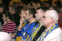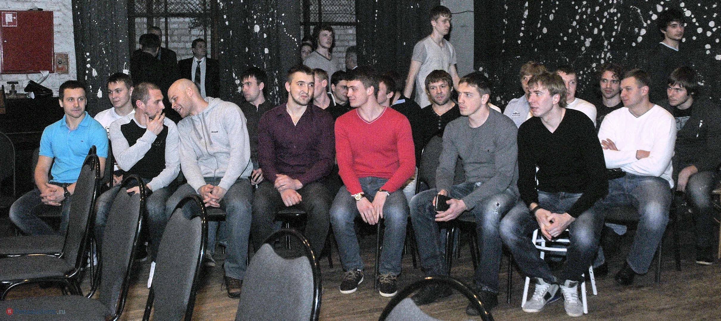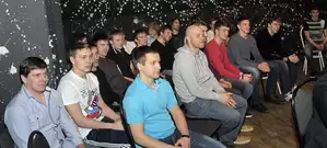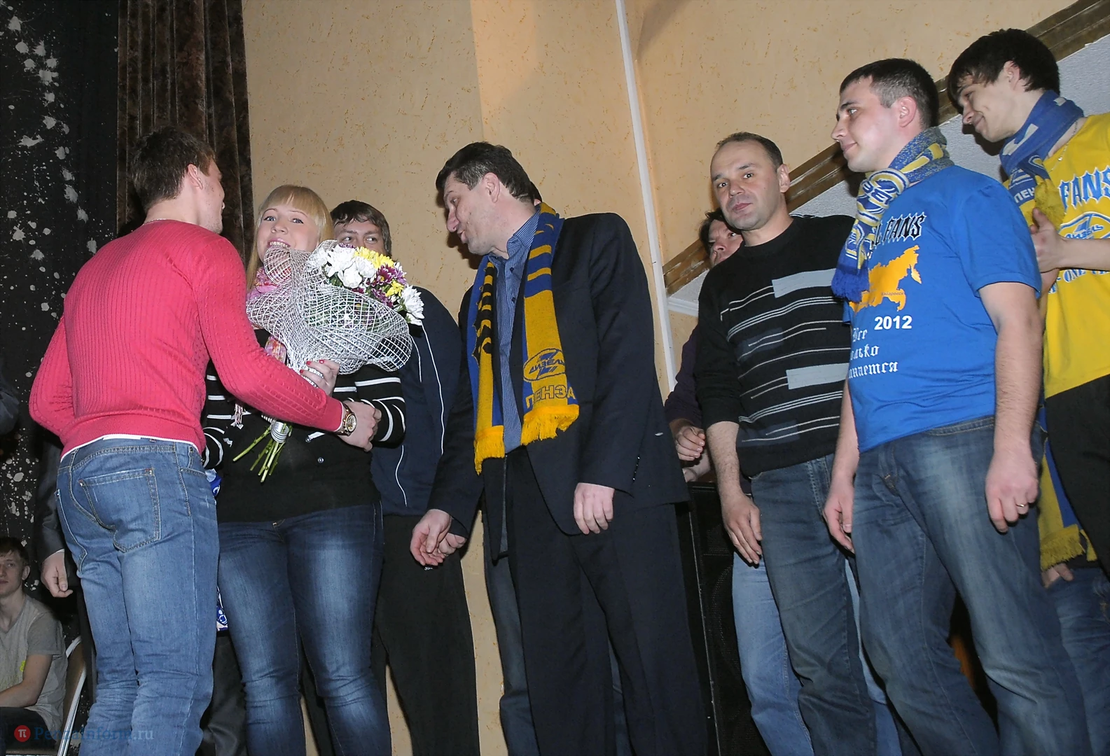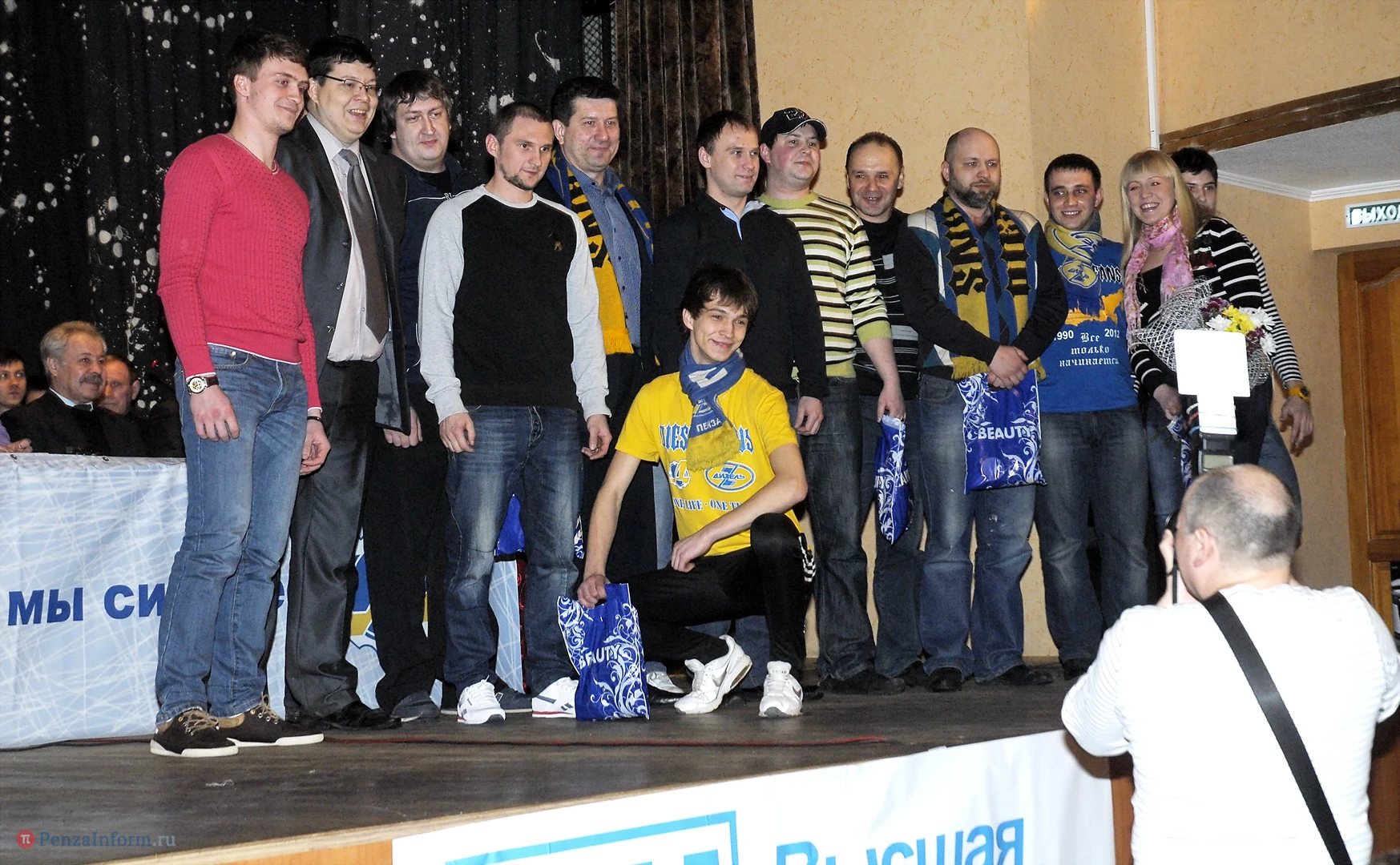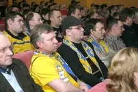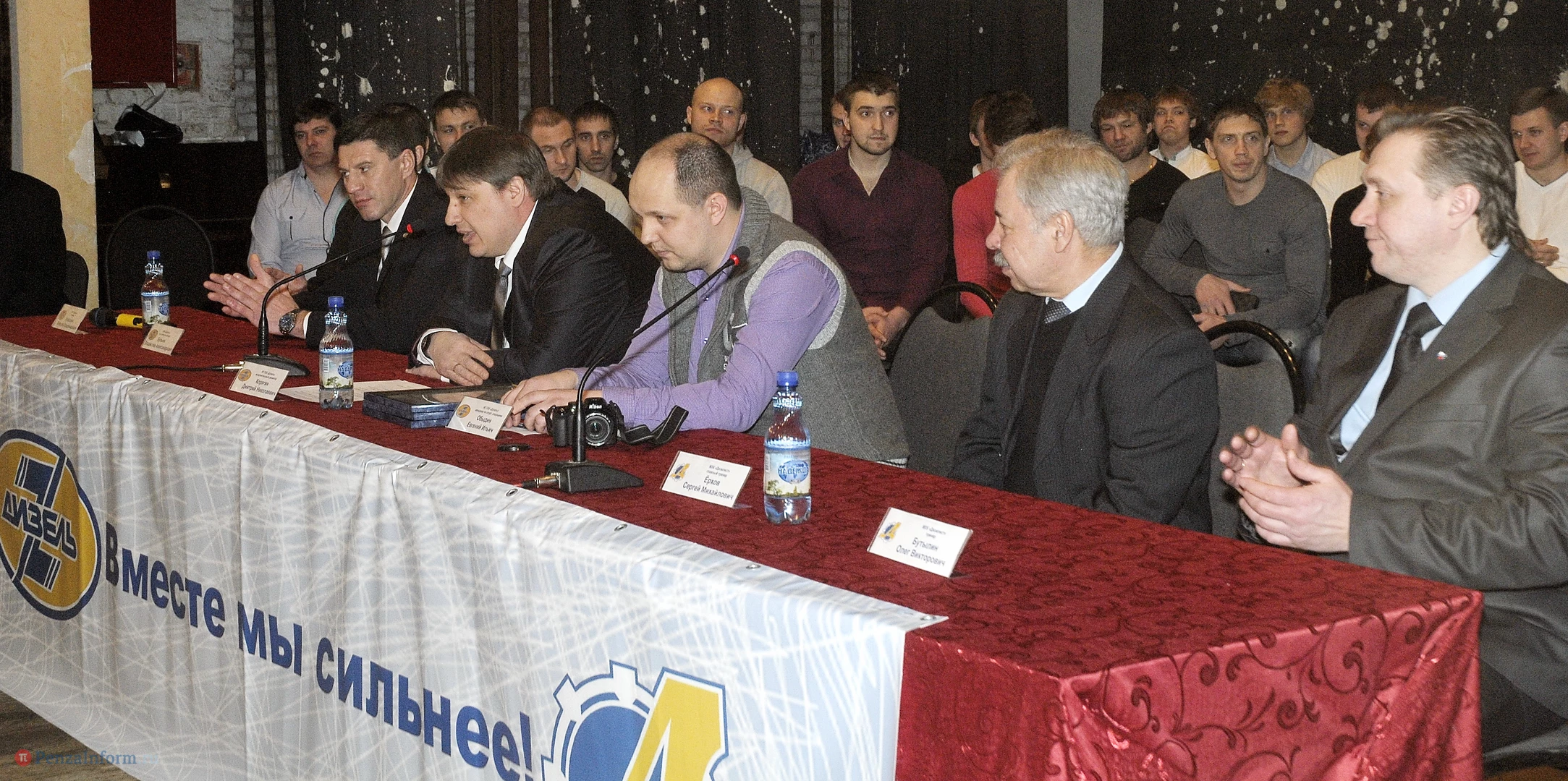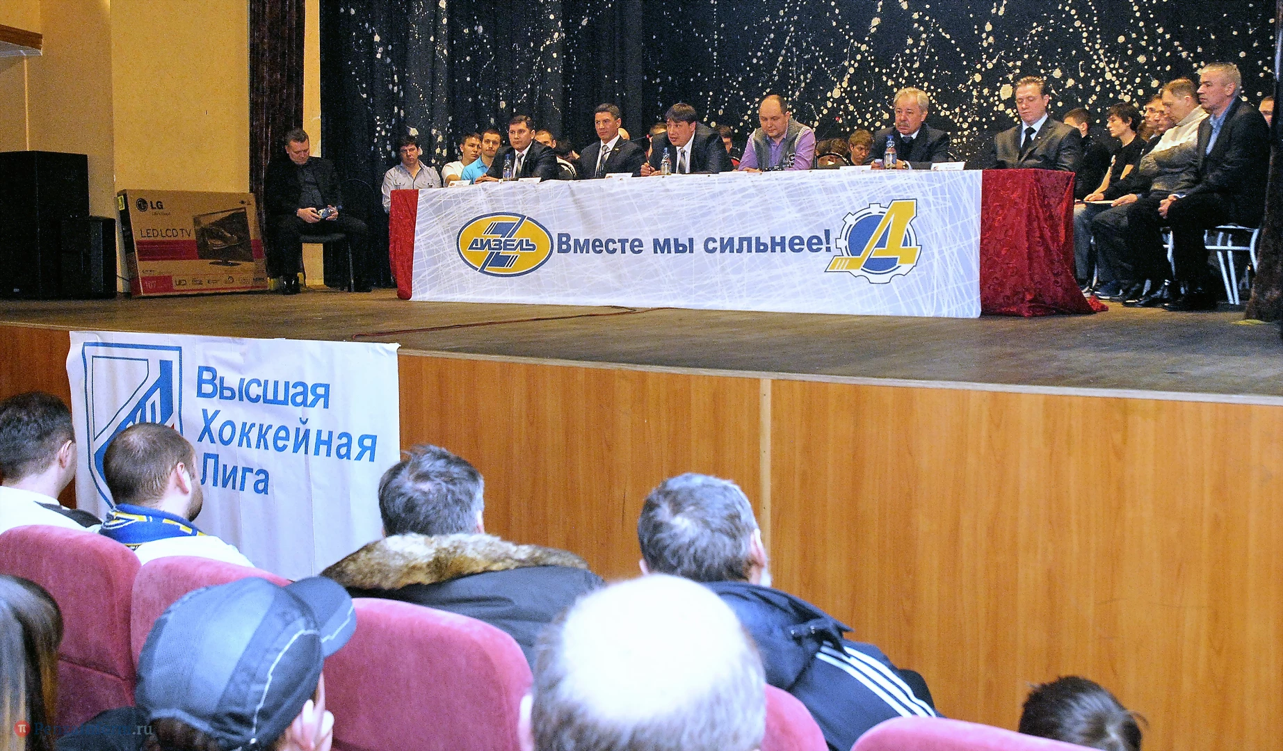Они пришли держать ответ перед своими фанатами за провальное выступление в сезоне. На сцене были не только великолепная пятерка и вратарь, но и тренеры, руководство клуба «Дизель», их младшие товарищи из «Дизелиста».