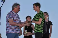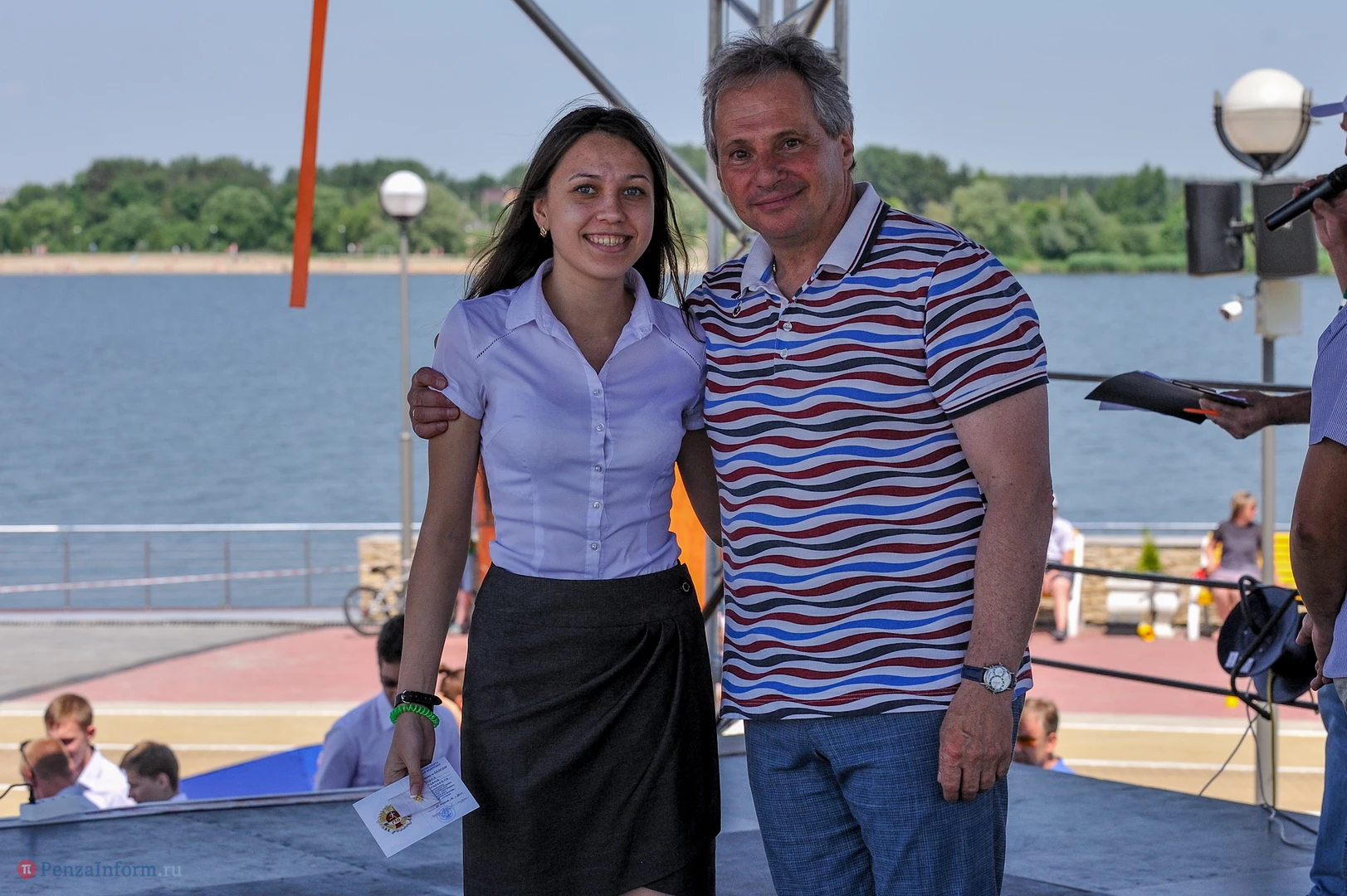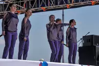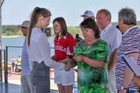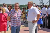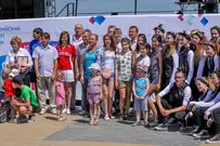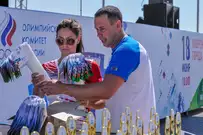 На сцене гостей праздника приветствовали участники, призеры и победители Олимпийских игр прошлых лет: Наталья Сутягина, Игорь Лукашин, супруги Юлия и Алексей Воеводины.