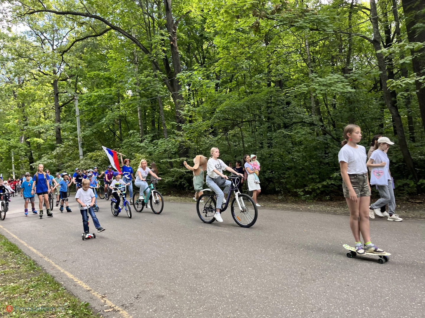 22 августа на Олимпийской аллее в Пензе в пятый раз состоялся парад «Триколор». Провести День российского флага в движении пришли люди всех возрастов. Согласно условиям акции участники в белых, красных и синих футболках прибыли на велосипедах, самокатах, роликовых коньках, скейтбордах.
