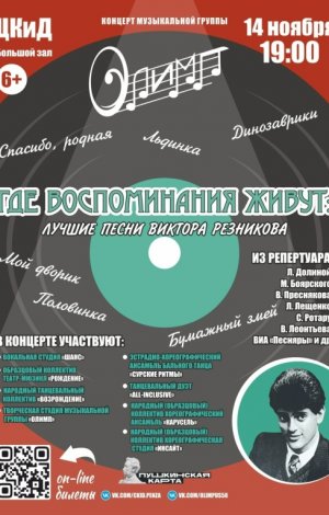 Музыкальная группа "Олимп" приглашает на концертную программу "Где воспоминания живут", посвященную творчеству советского и российского композитора Виктора Резникова!