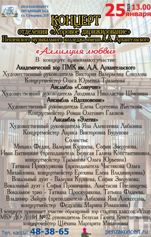 Концерт отделения «Хоровое дирижирование» Пензенского музыкального колледжа имени А.А. Архангельского, в котором примут участие: