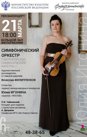 Юлия Игонина – одна из самых заметных и ярких российских музыкантов. Одухотворенность, цельность, глубокое проникновение в замысел композитора – отличительные черты её зрелого исполнительского стиля. Постоянно растущий многогранный репертуар скрипачки включает в себя более 40 концертов для скрипки с оркестром, множество сонат, концертных пьес и произведений разных эпох.