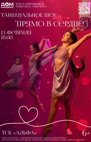 Танцевальное шоу «Прямо в сердце» расскажет, что на самом деле есть Любовь? Что думают дети и взрослые об этом чувстве, как не потеряться в круговороте дел и чувствовать это прекрасное состояние?.. Любовь между строк для нас — это любовь в каждом движении!