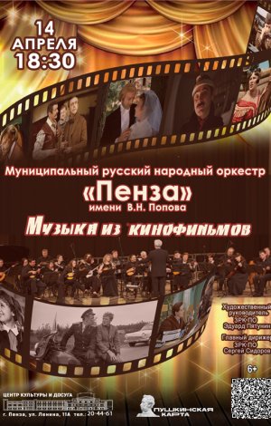 Русский народный оркестр "Пенза" им. В.Н. Поповаприглашает на концерт «Музыка из кинофильмов»