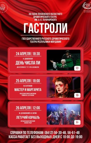 Напоминаем: с 24 по 26 апреля на сцене Пензенского драматического театра пройдут гастроли Государственного русского драматического театра Республики Мордовия (Саранск).