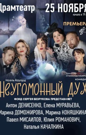 «Неугомонный дух» – это комедия с яркими персонажами и забавными ситуациями. Это больше, чем просто спектакль; это увлекательное путешествие во времени, где прошлое оживает, настоящее выходит из-под контроля, а будущее вообще оказывается под вопросом. Немного сумасшествия и хороший юмор сделают ваш вечер незабываемым! Хотите узнать, чем закончилась история в доме Кондомайн? Ждём вас на спиритическом сеансе!