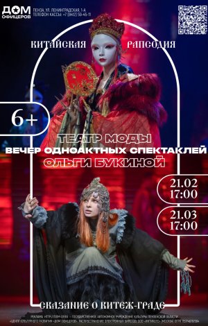 «Китайская рапсодия» расскажет вам правдивые истории о Четырёх великих красавицах Китая. Они гордость Поднебесной, героини китайских идиом. На сцене оживут старинные картины и вы увидите костюмы — полные копии живописных работ древнего художника, выполненные по музейным выкройкам того времени.