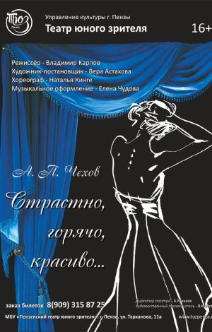 Как говорил сам Антон Павлович, “женщины без мужского общества блекнут, а мужчины без женского глупеют”. Поэтому в нашем спектакле мужчины и женщины будут в приятном обществе дуг друга размышлять о том, что их связывает, танцевать на балу, признаваться в своих чувствах, страстно, горячо и красиво проживать отведённые им минуты… Это спектакль для тех, кому, как Чехову в своё время, “хочется влюбиться, или жениться, или полететь на воздушном шаре”!
