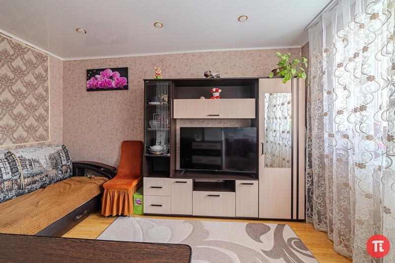 В квартире выполнен хороший ремонт, все аккуратно и достойно: металлическая входная дверь, установлены пластиковые окна, натяжные потолки, полы залиты стяжкой, на полу в коридоре и кухне - керамогранит, в спальне - ламинат, санузел в современной плитке. Новым владельцам остаются кухонный гарнитур, стенка-горка в комнате, диван.